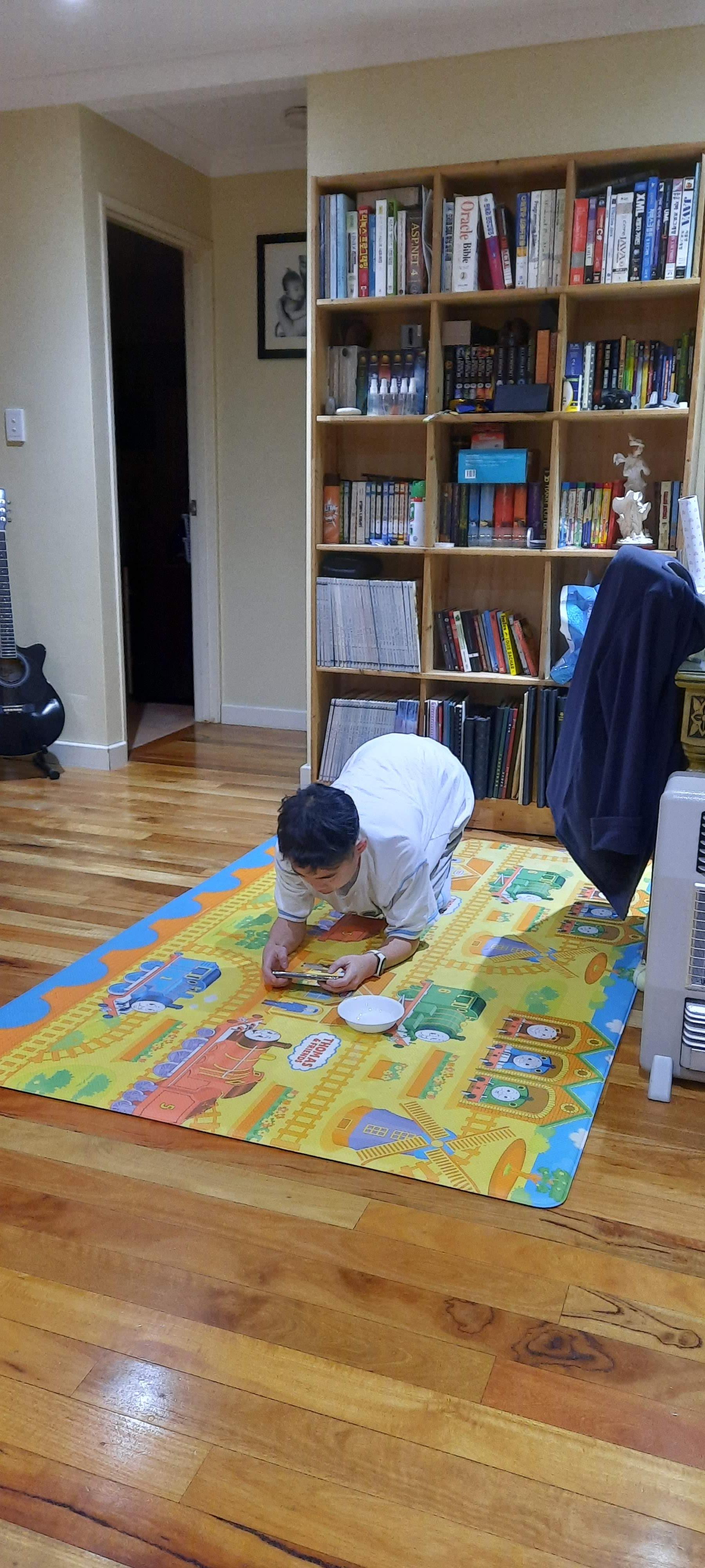이렇게 불편한 자세로 열심히 게임하는 주헌.