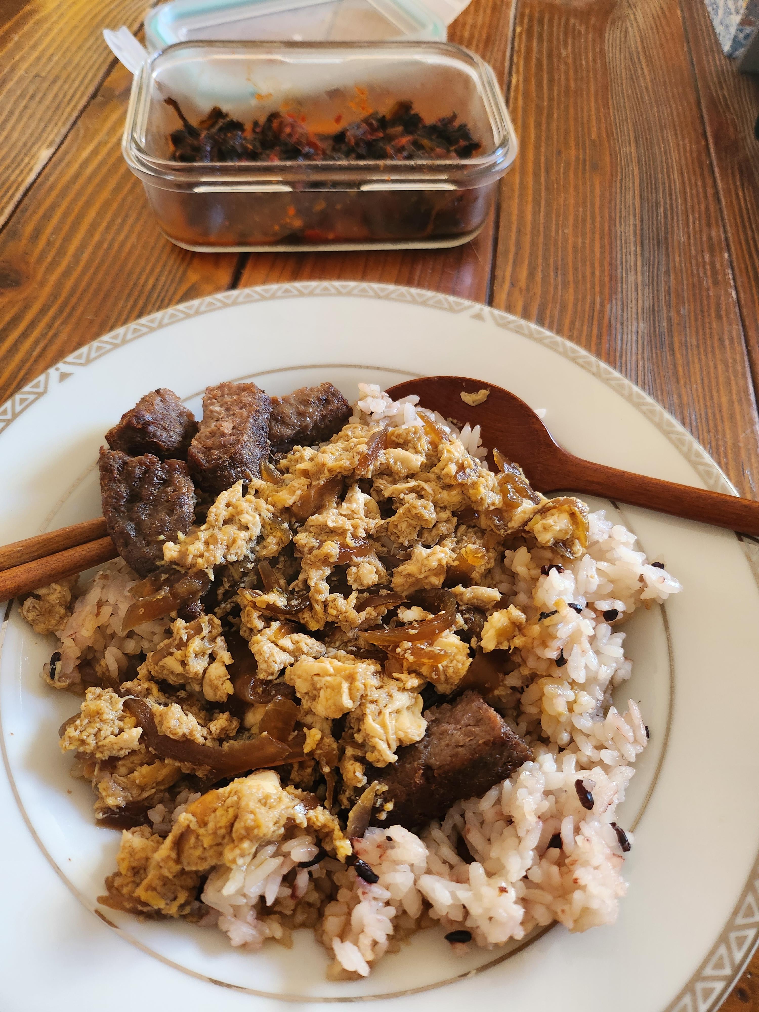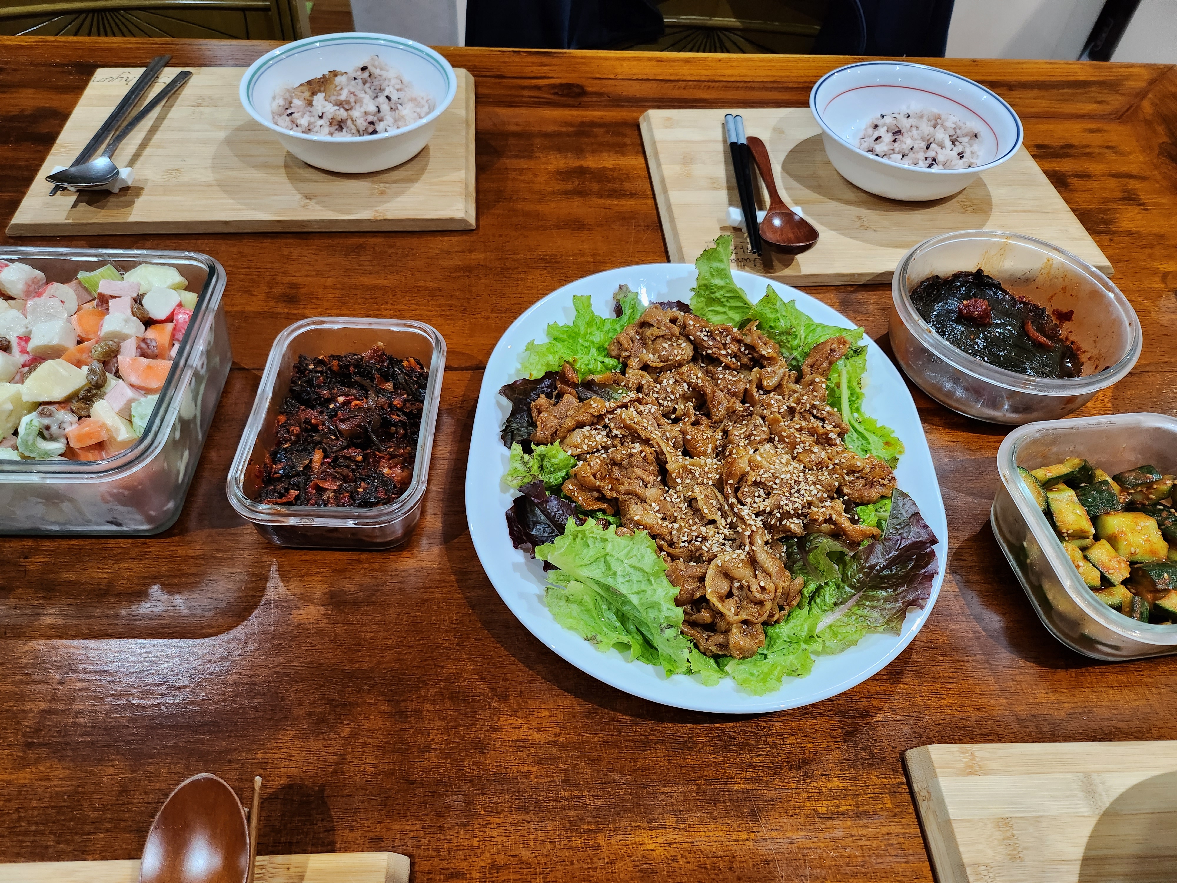 제육불고기랑 밑반찬에 밥먹기.