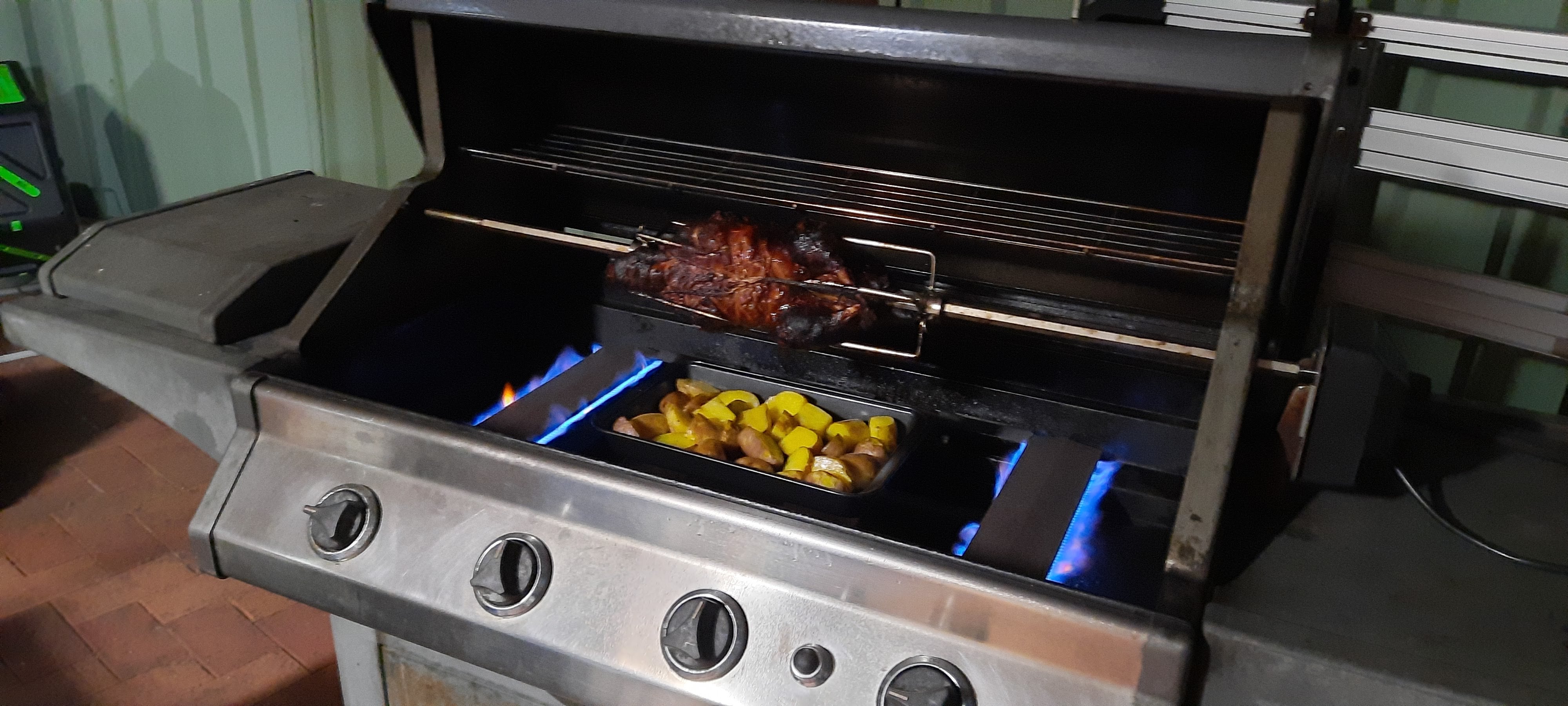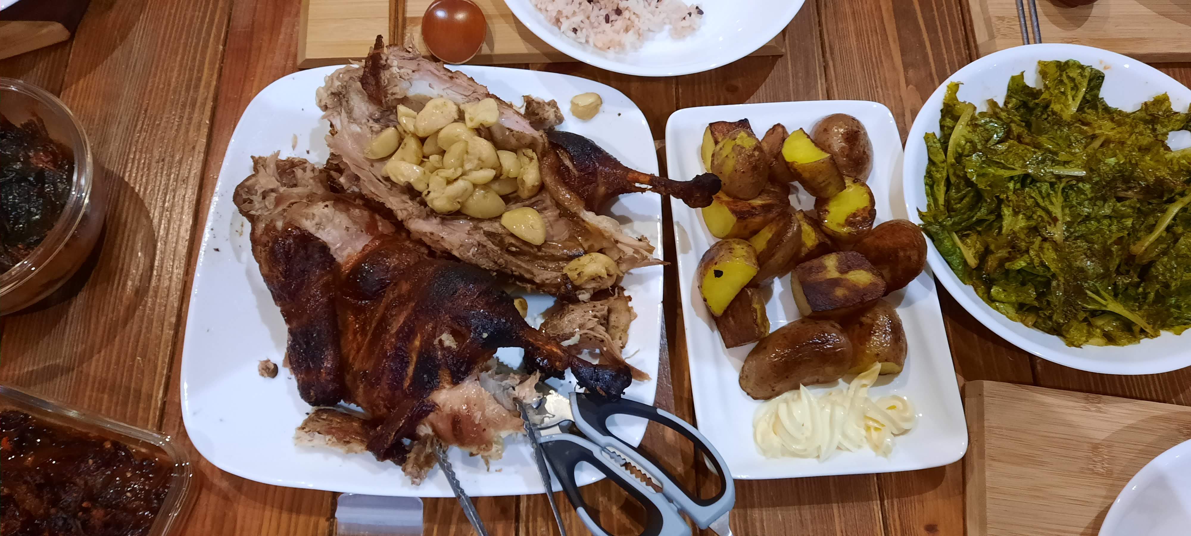 재현아빠 백년만의 바베큐 기계 청소 후 야심차게 오리 통구이 돌리기. 감자가 대박임! 오리 기름에 휴게소 버터구이 감자 못지 않음.ㅋㅋ 오리보다 감자가 더 인기