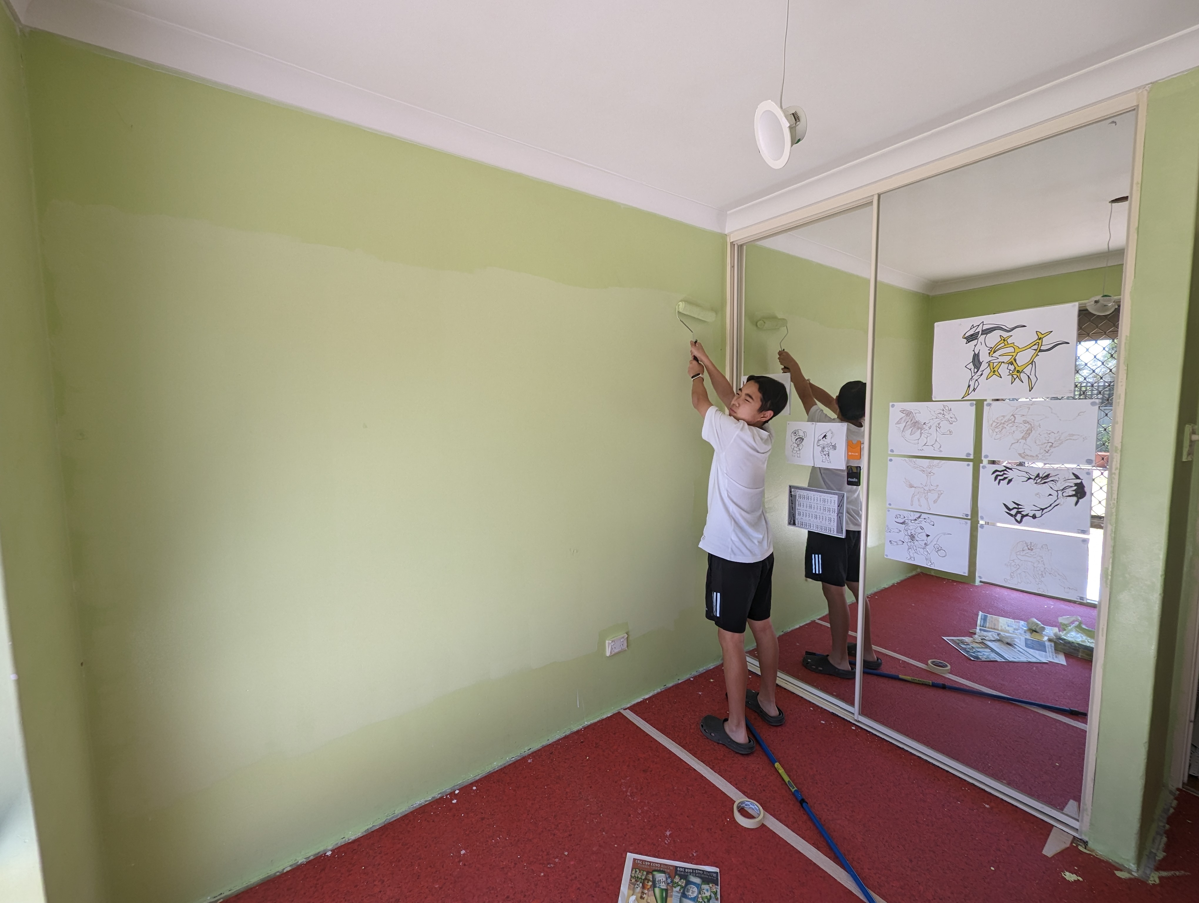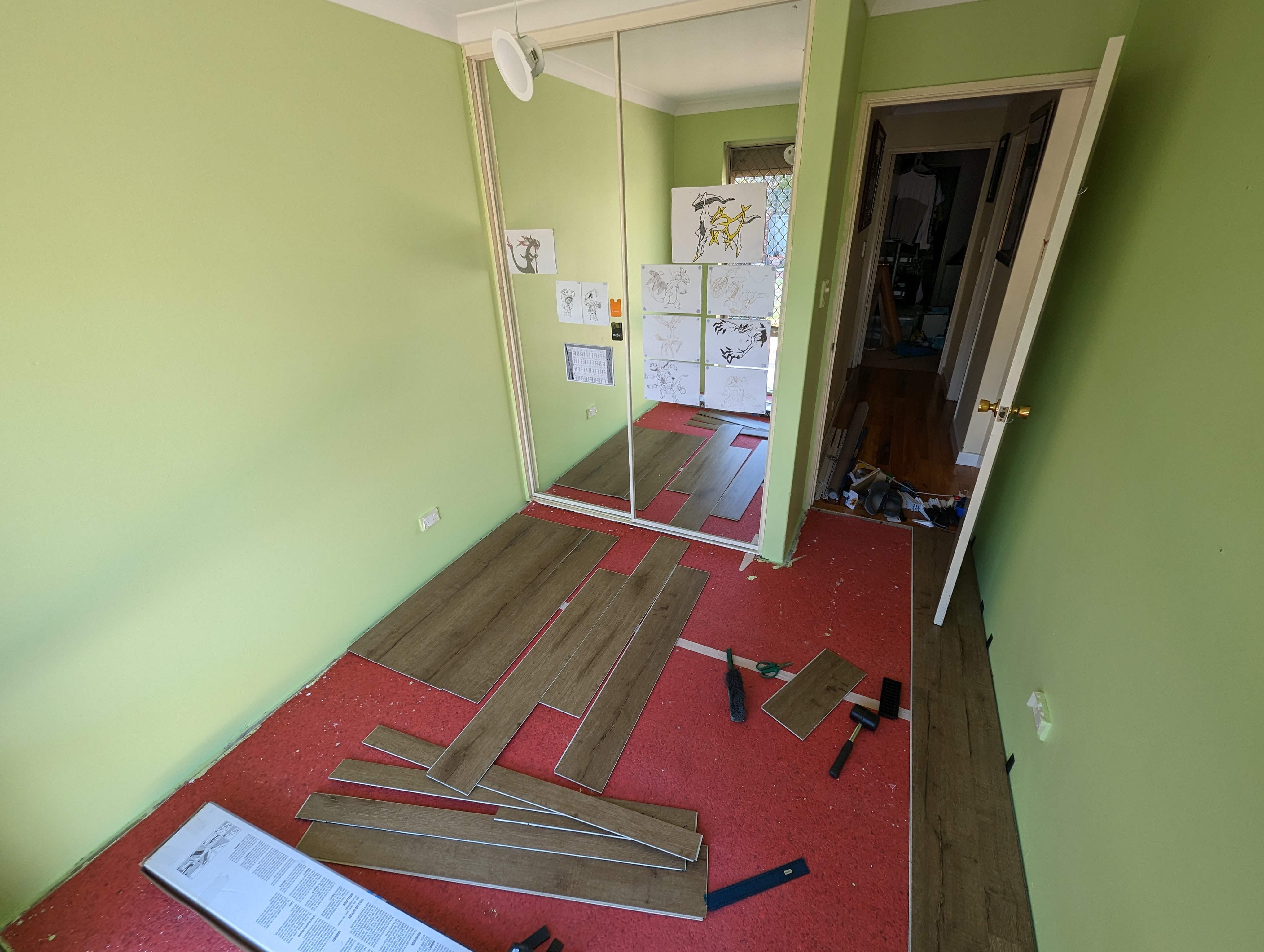아빠는 주헌이방 바닥 카펫트 걷어내고 바닥 시공 준비중