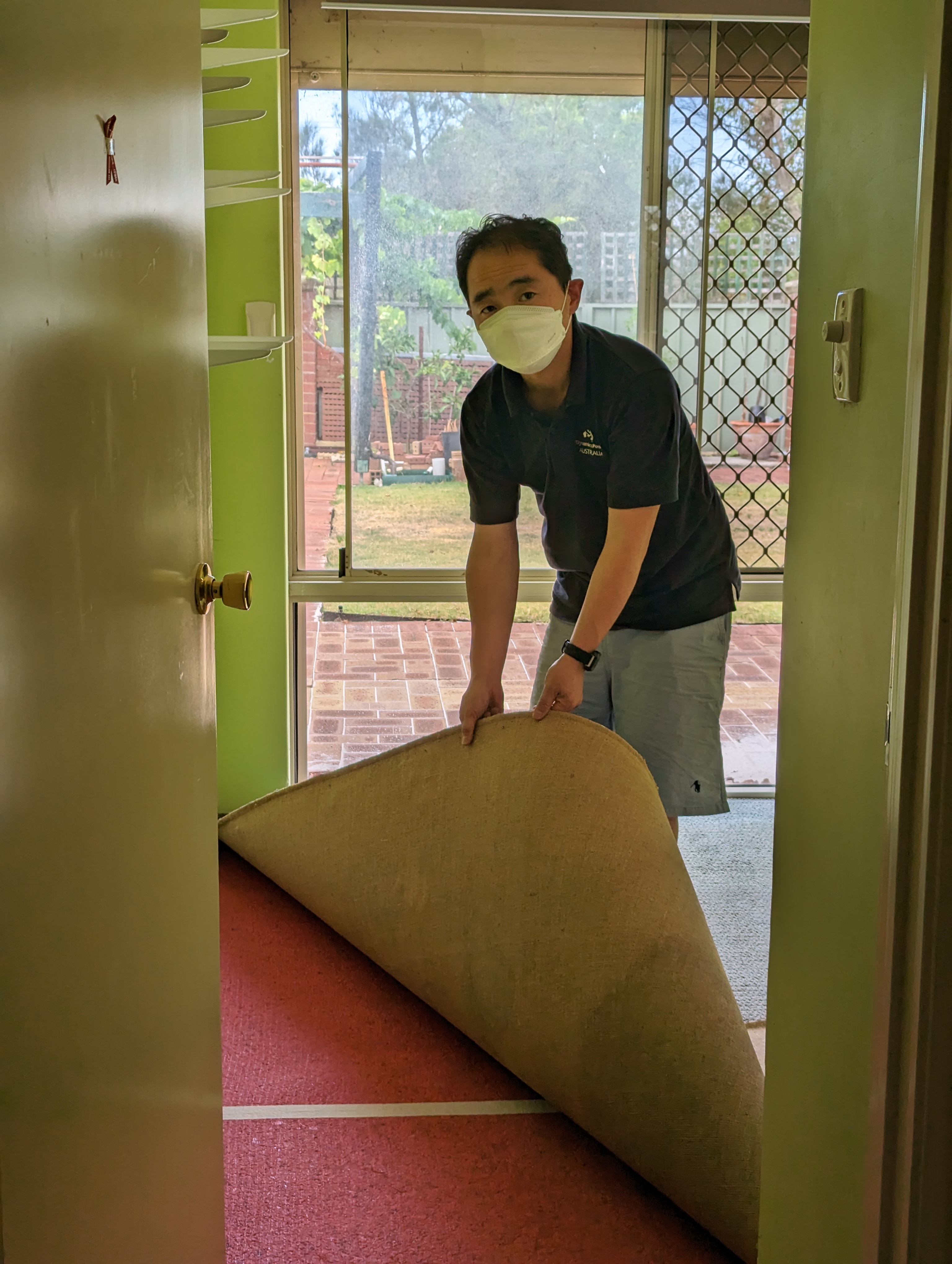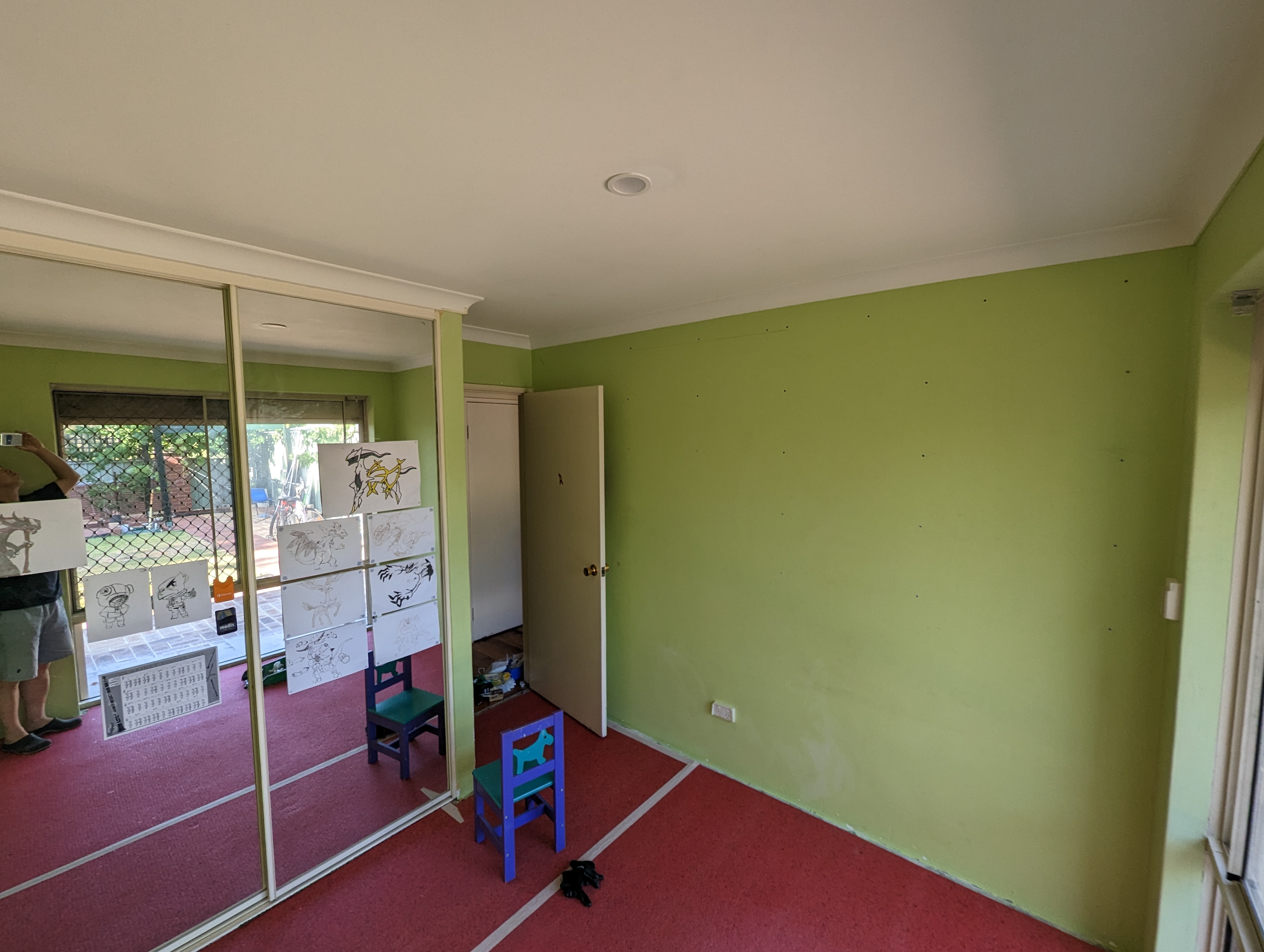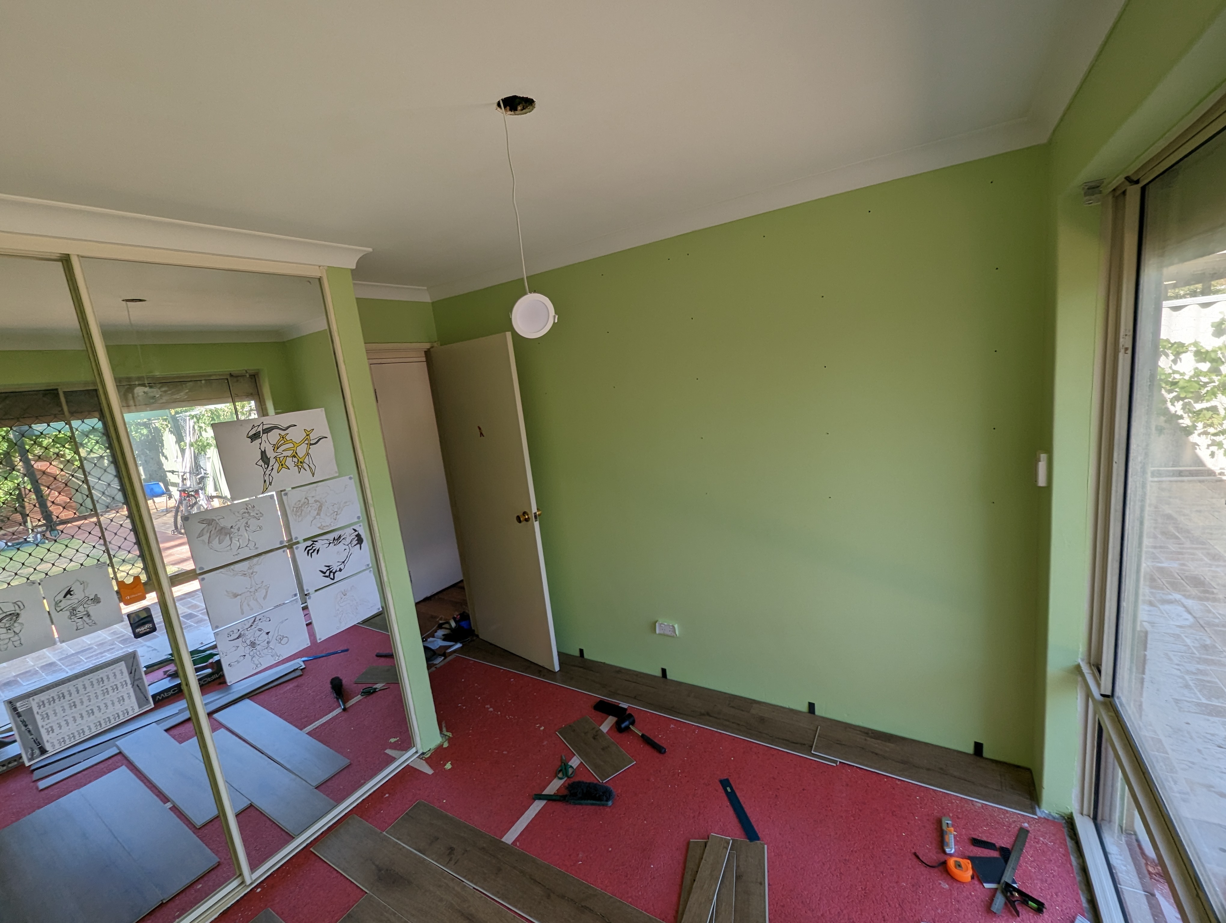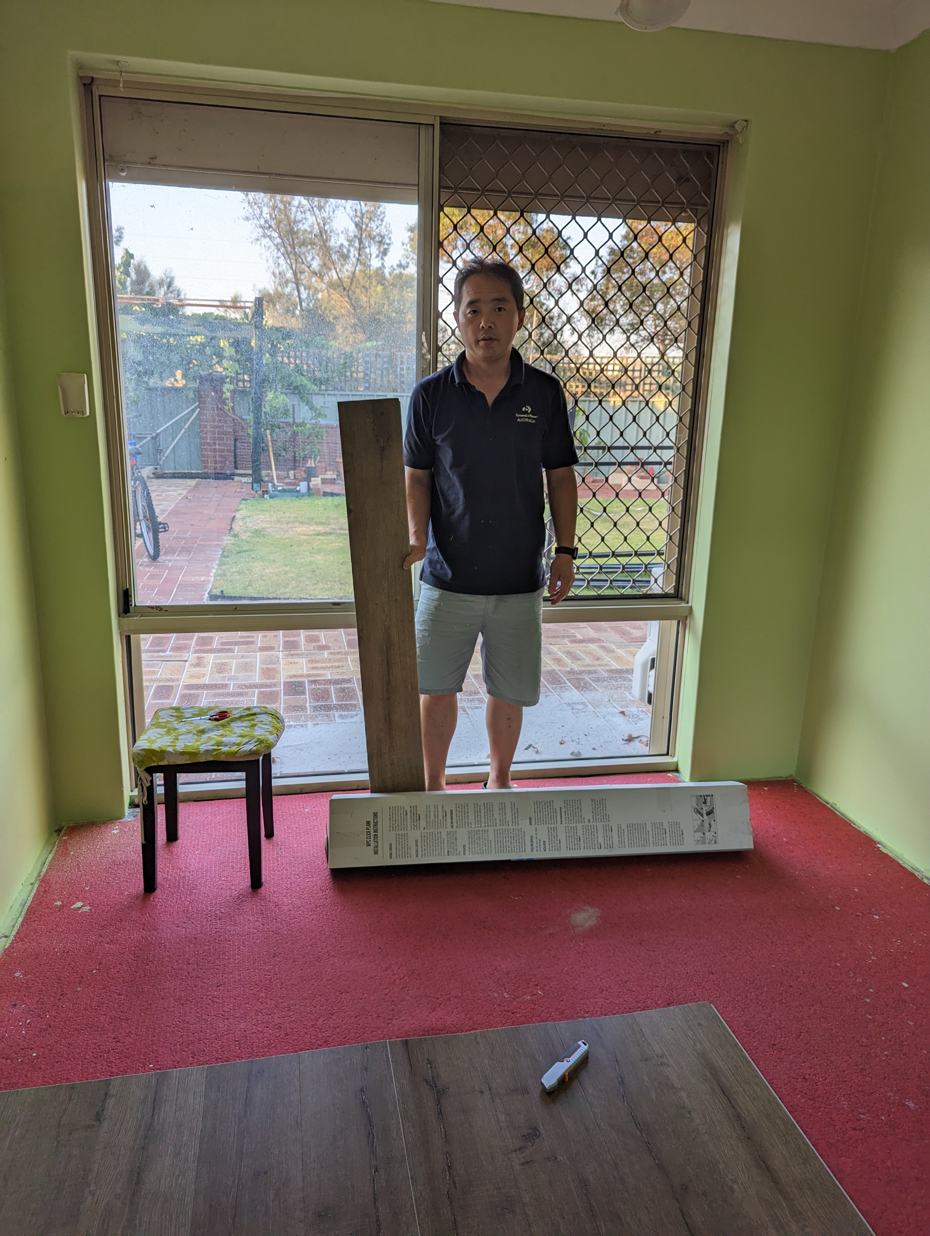 아빠는 주헌이방 바닥 카펫트 걷어내고 바닥 시공 준비중