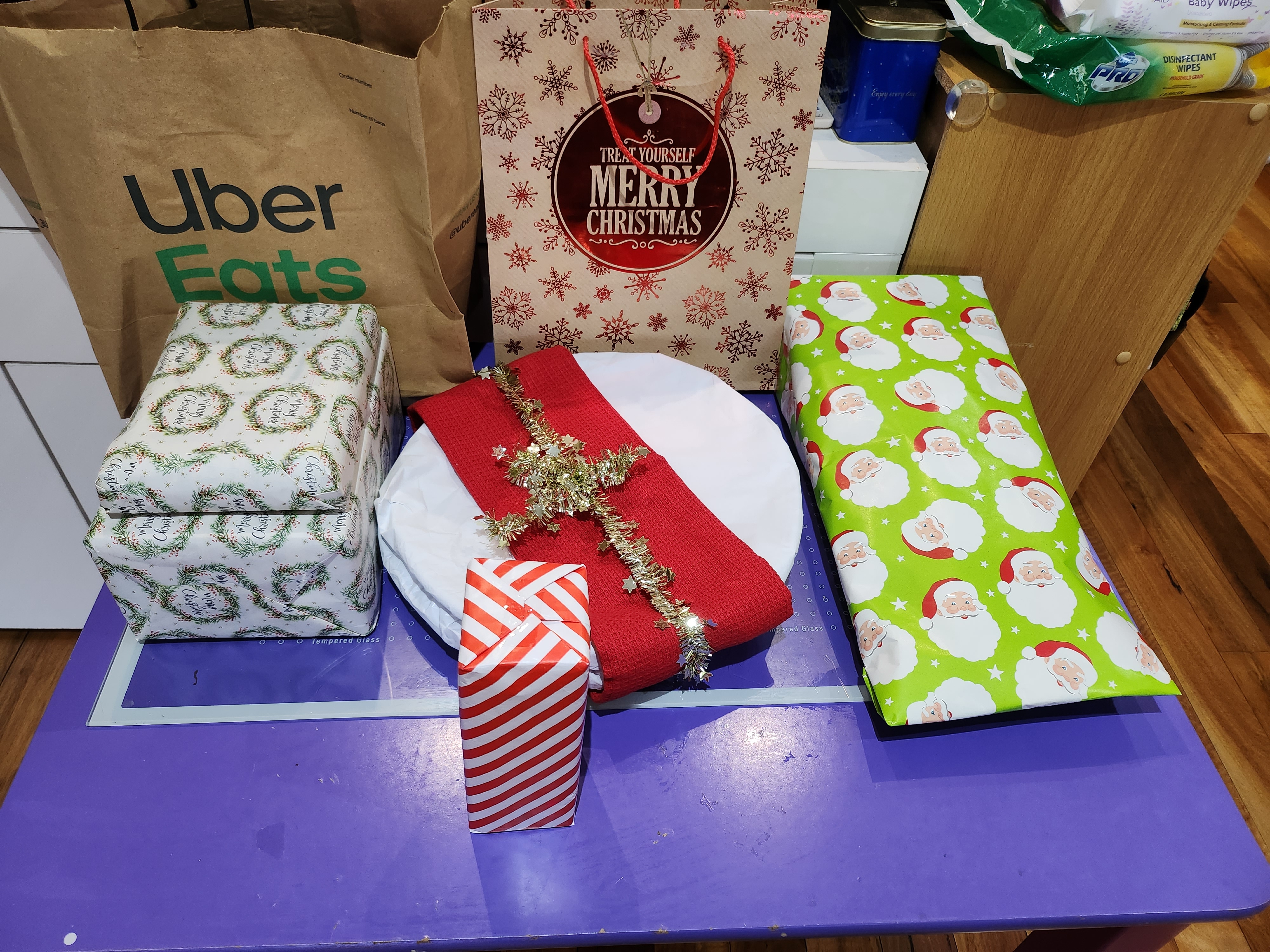 오늘 오후에 있을 셀모임-크리스마스 파티로 모이는데 크리스마스 선물 포장. (접시준비)