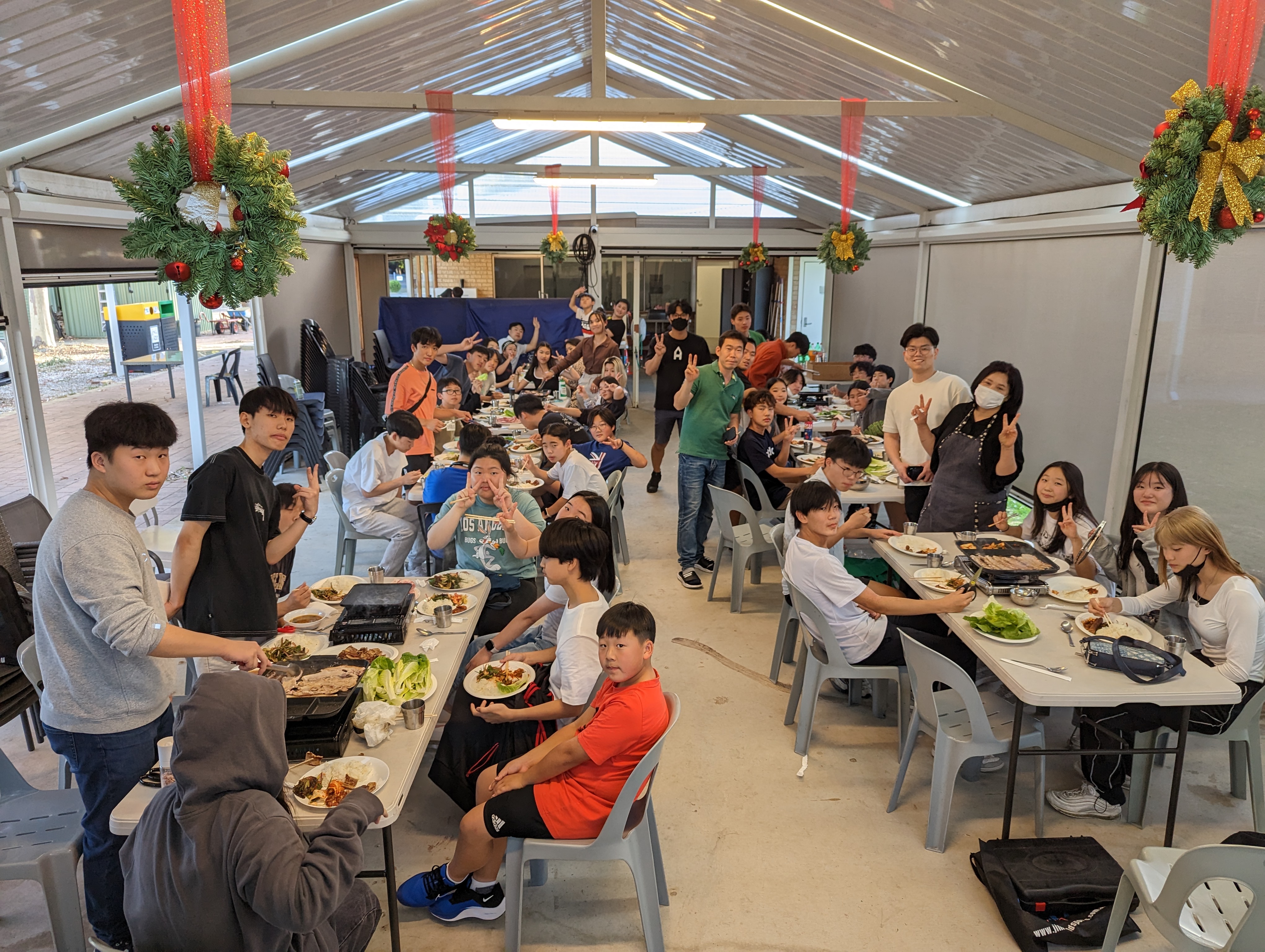 교회 중고등부 크리스마스 파티. 각 셀별로 고기구워먹기