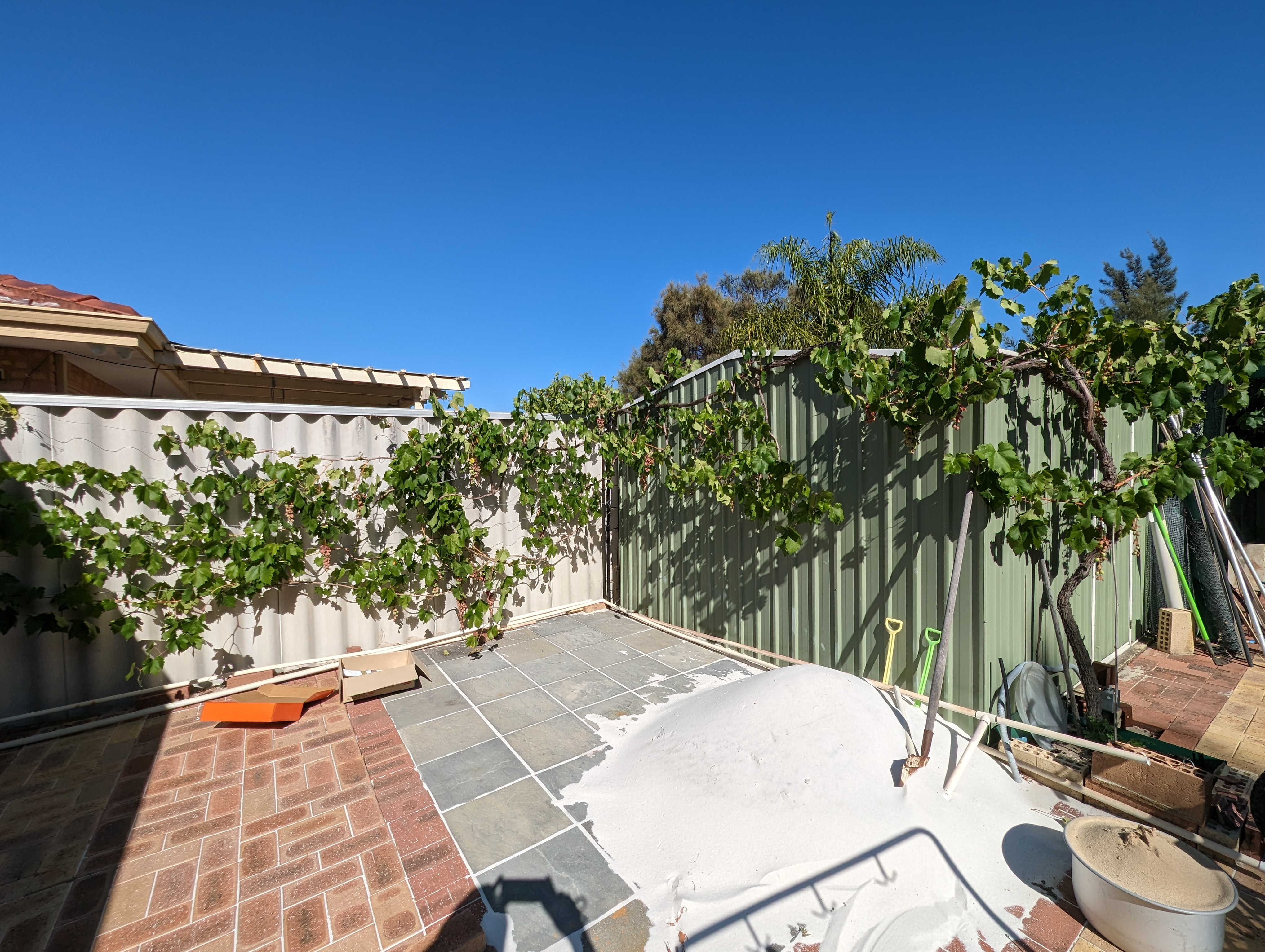 우리집 포도나무 올해는 좀 정성을 들여서 가지치기도 해줘서 수형은 잡혔는데..몇일 물을 안 줬더니 포도송이가 말라버린다. ㅠㅠ