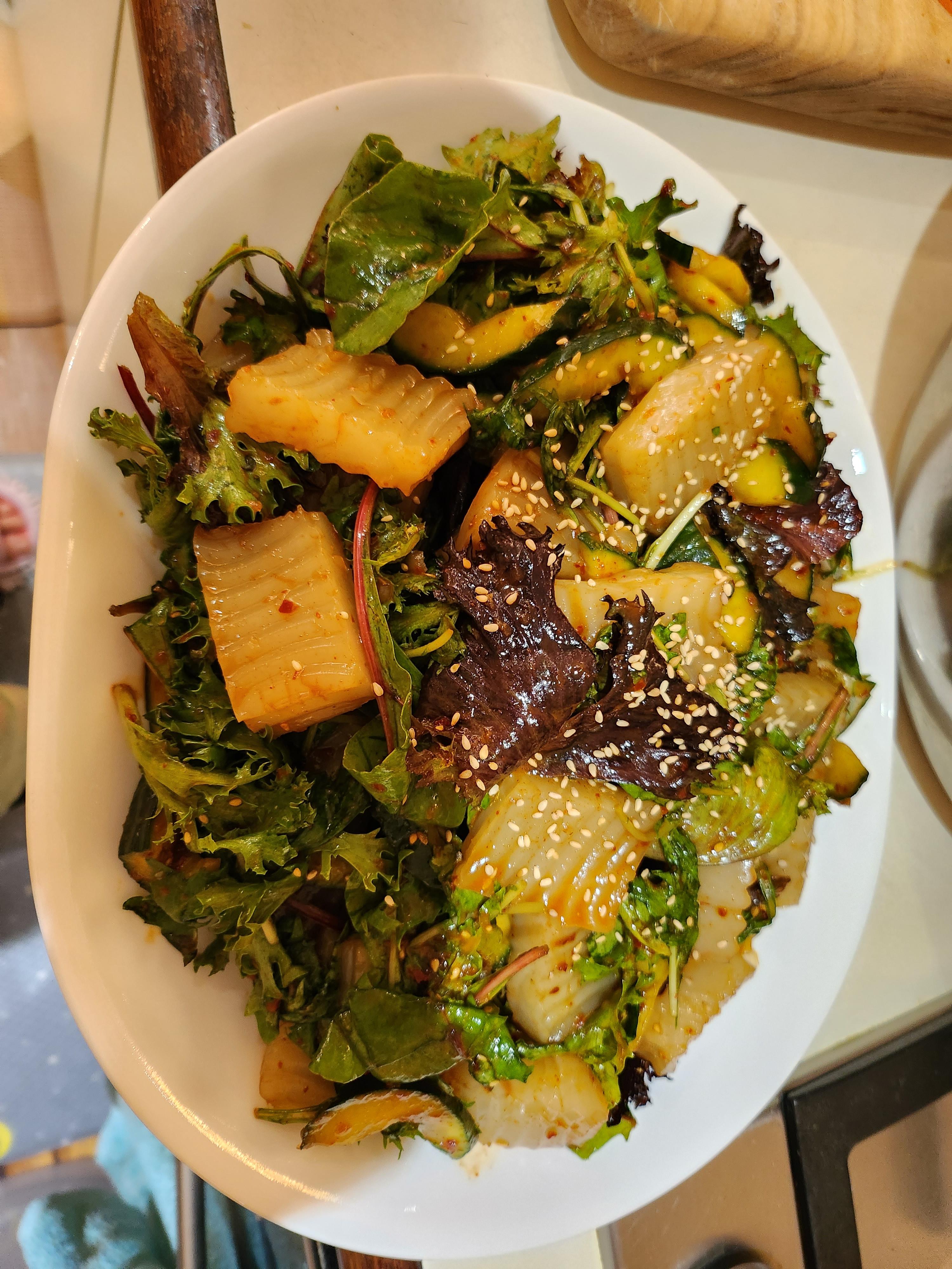 수육 삶고 밤묵 쑤고 연어회 손질하고 다시 수육 썰고 묵 무치고 요건 주말아침