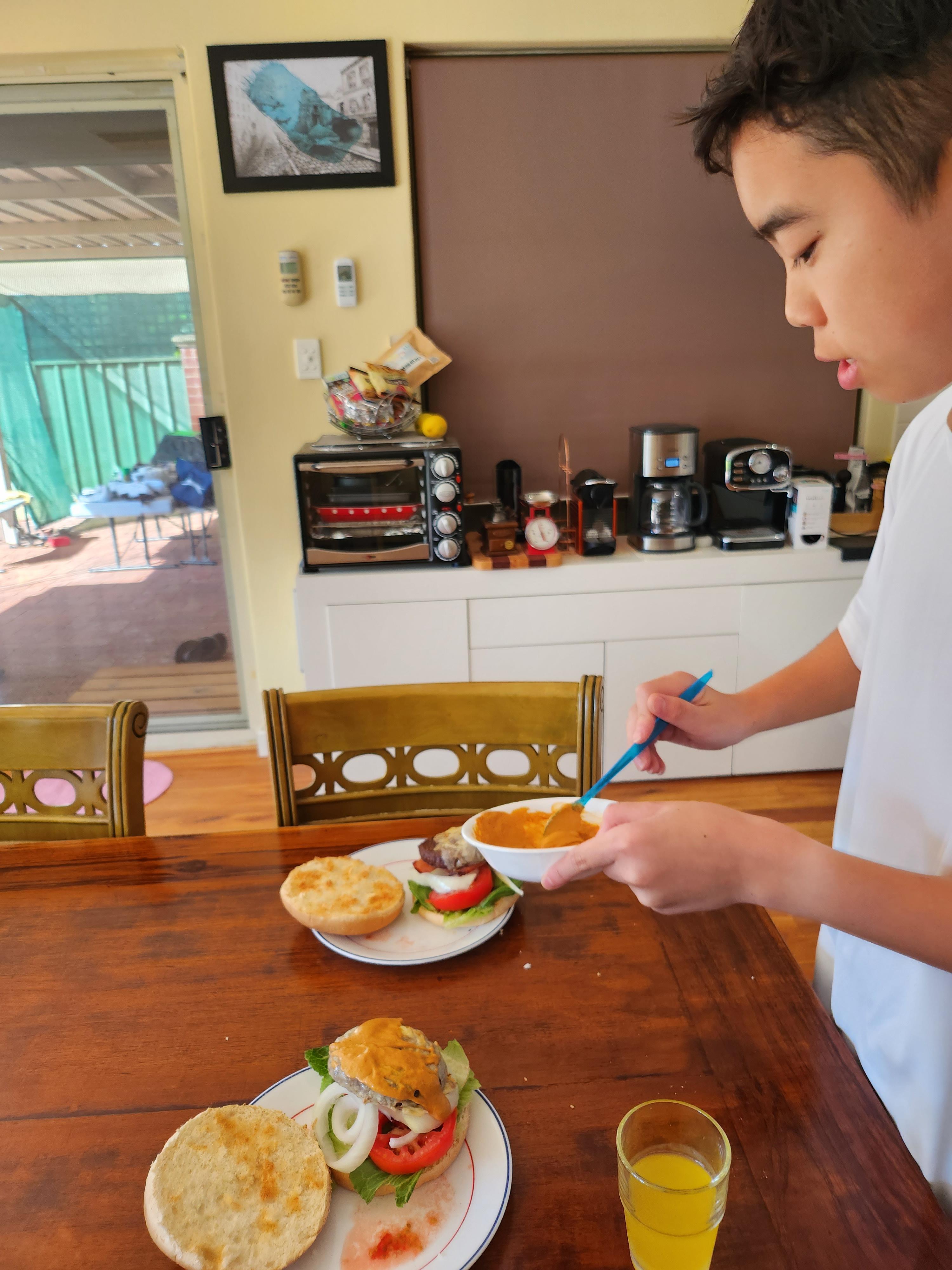 주헌이가 버거 만드는 날. 버거빵과 패티를 사 두었더니 손수 버거 소스까지 만들고 버거에는 꼭 양파랑 토마토가 들어가야 한다며 넉넉하게 넣음.