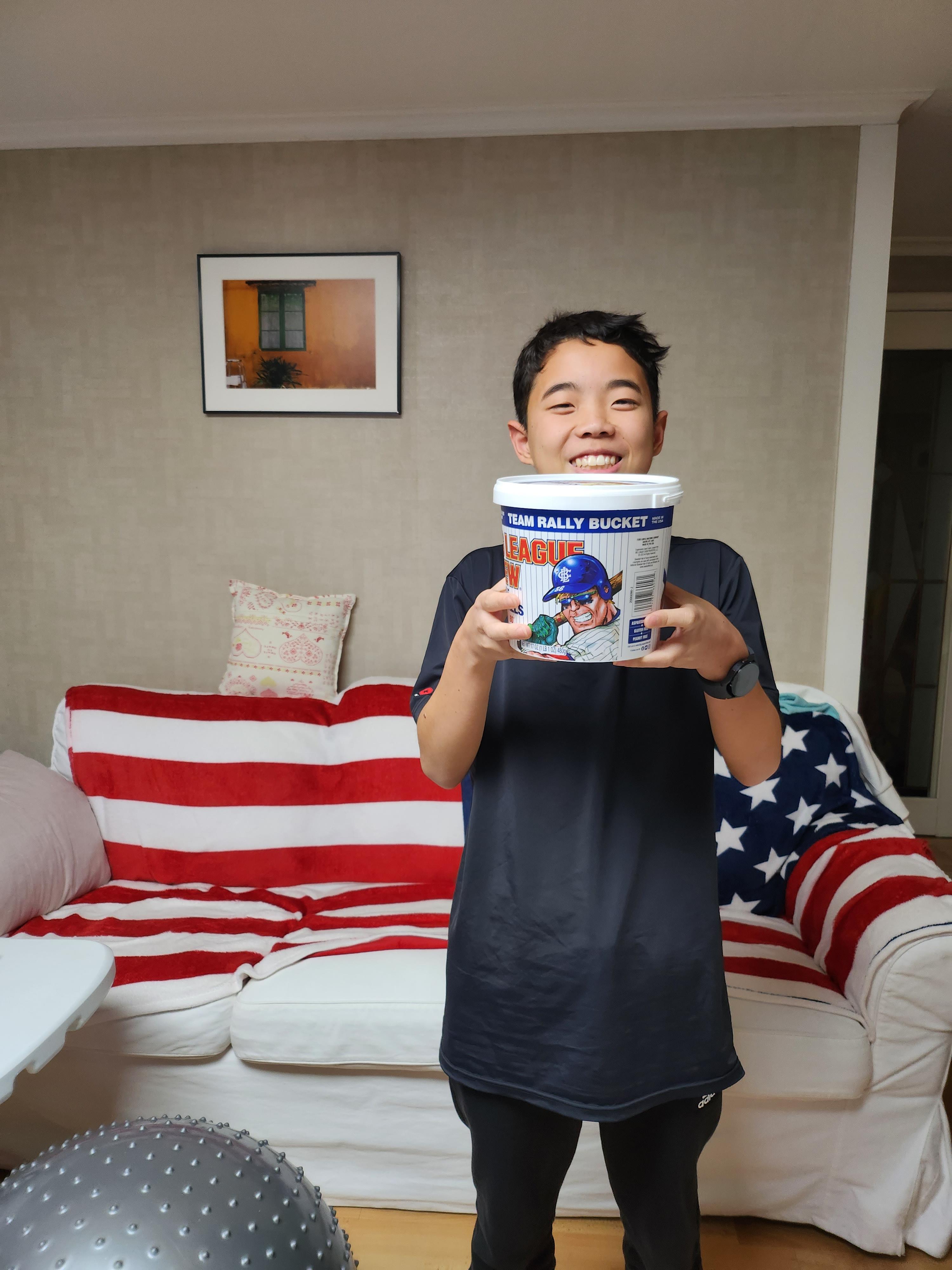 미국에서 주아고모가 왔어요. 껌 좋아하는 주헌이 메이저리거들의 애용껌 한박스 받고 입이 찢어짐.
