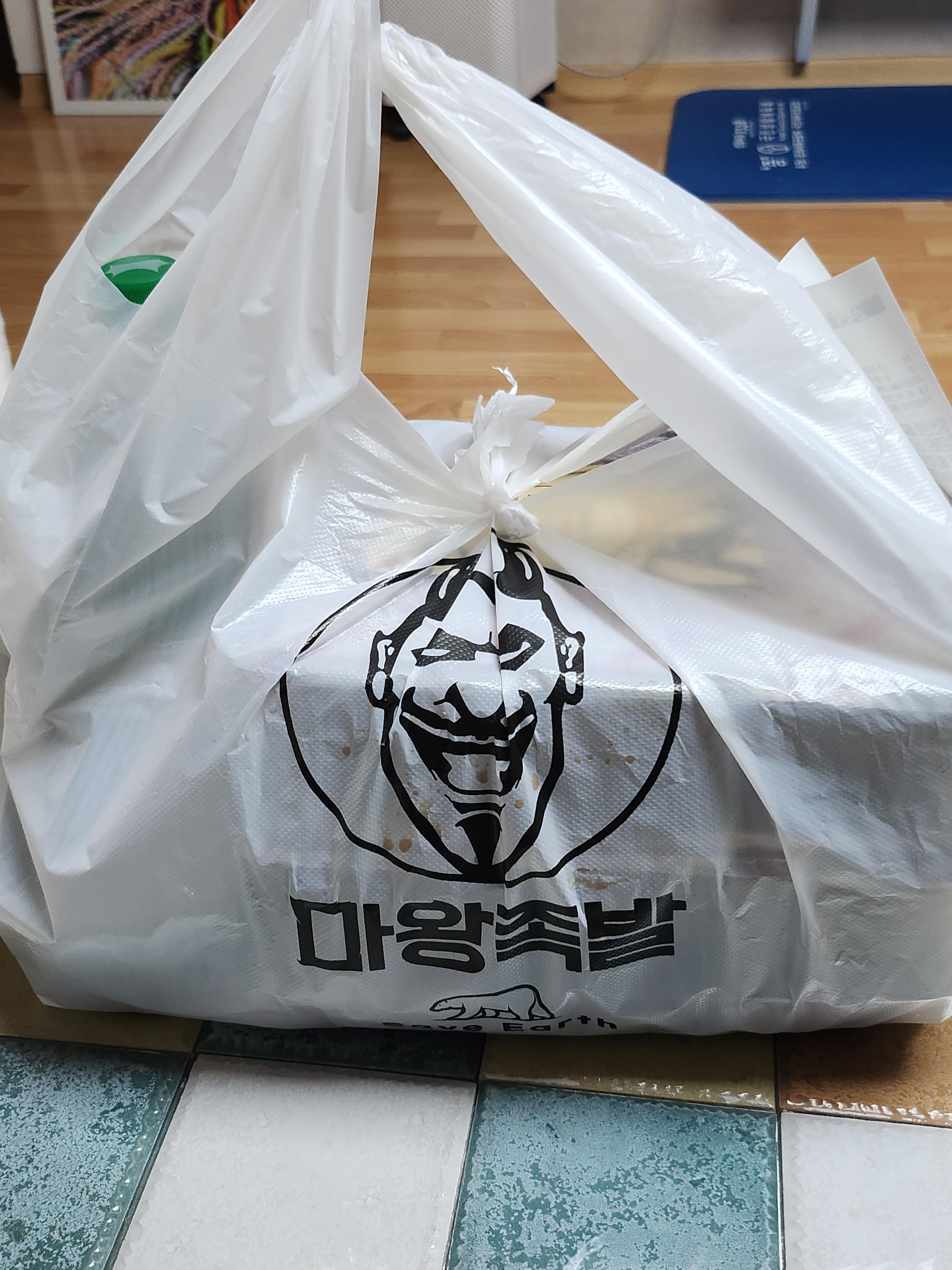 인화엄마 귀차니즘. 주문하고 재현아빠가 픽업해서 먹은 족발. 매운 족발. 맛 괜찮음. 당면이 더 매움.