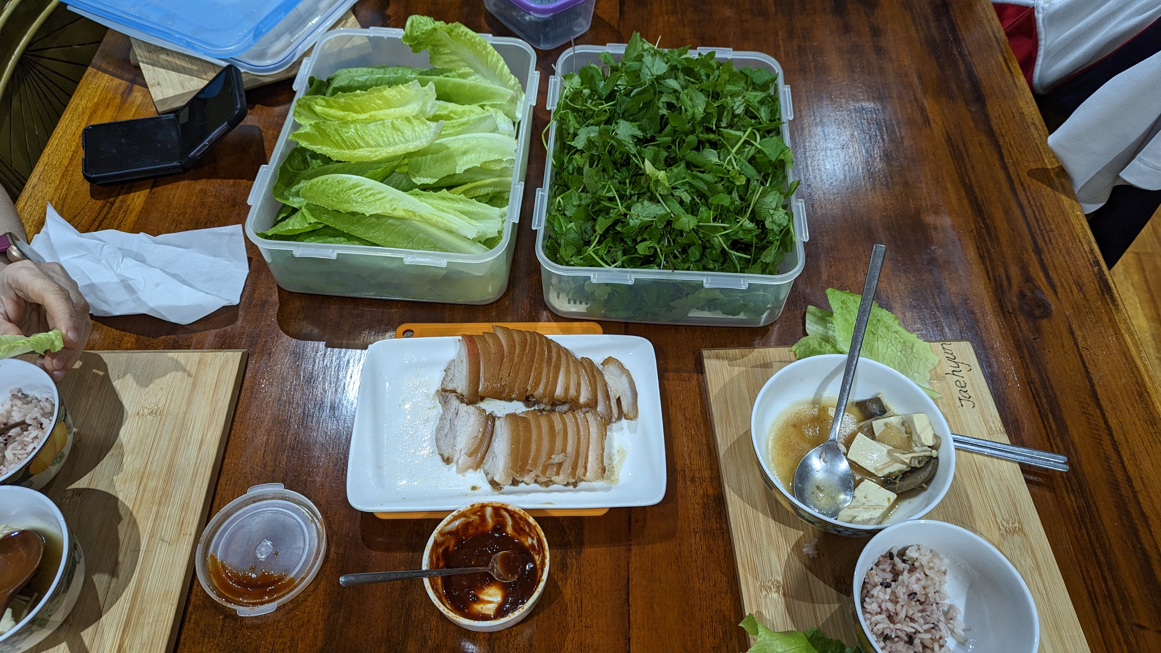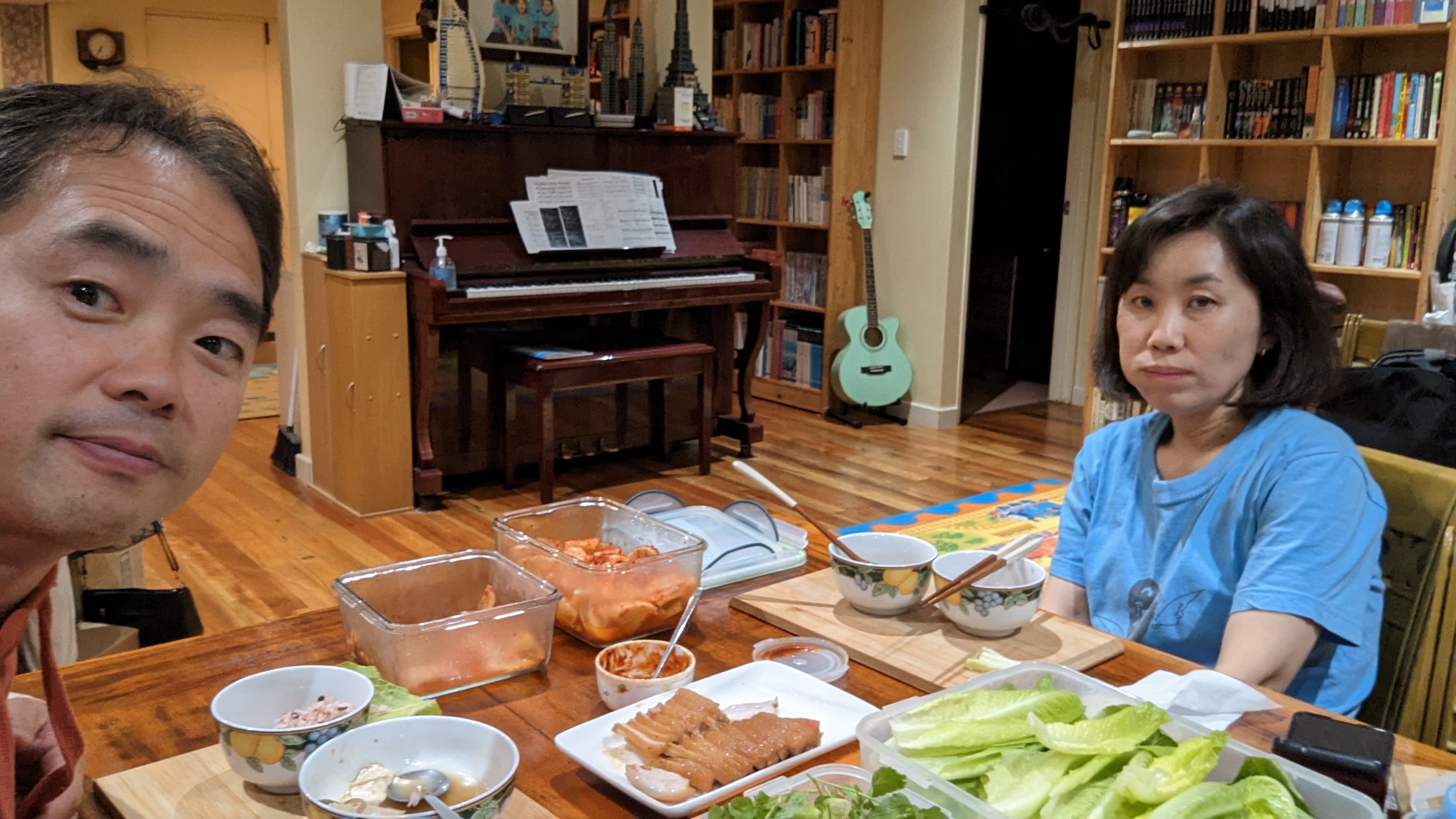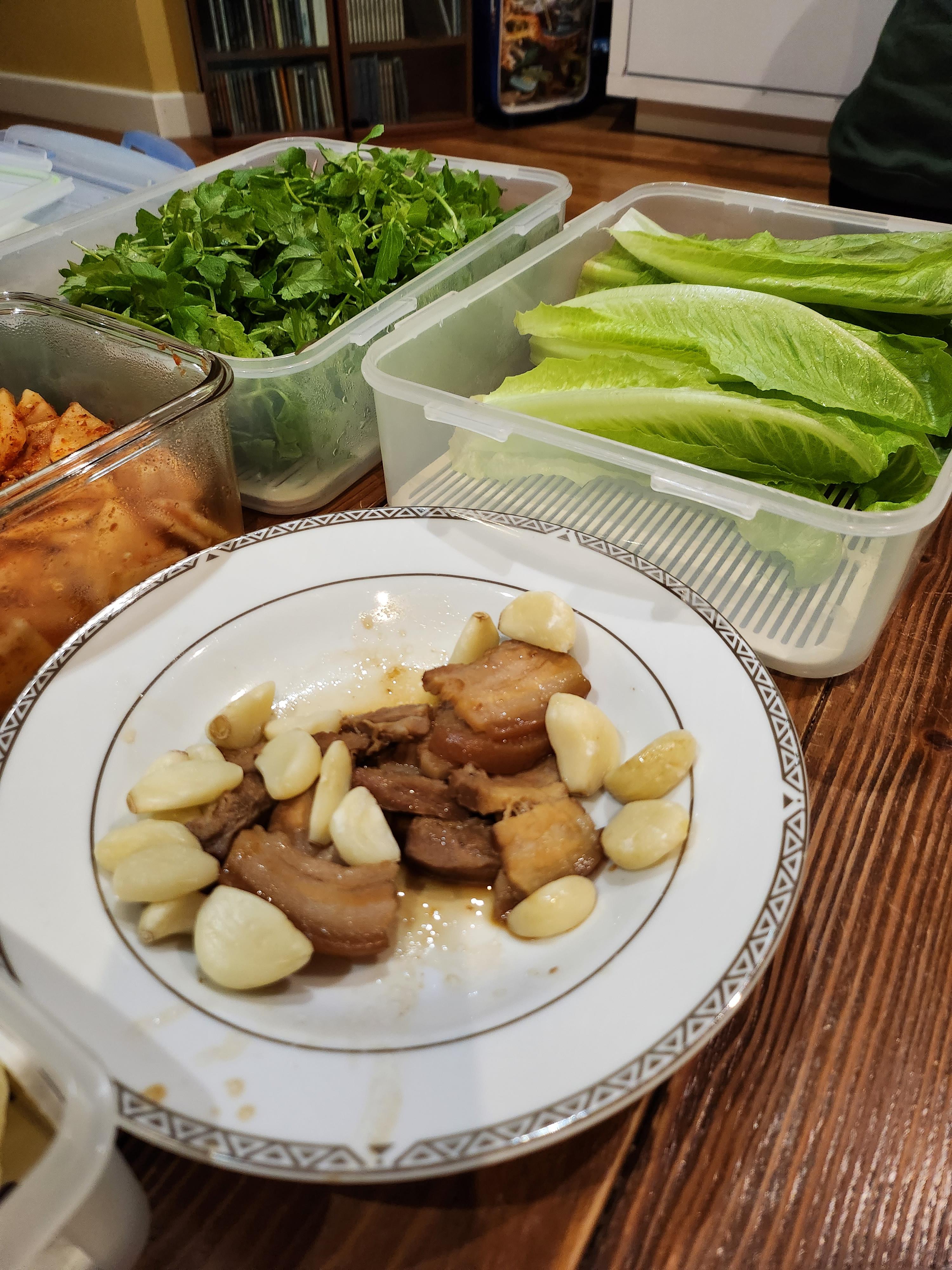 급하게 수육 먹기. 씹고 있는데 찍혔음.