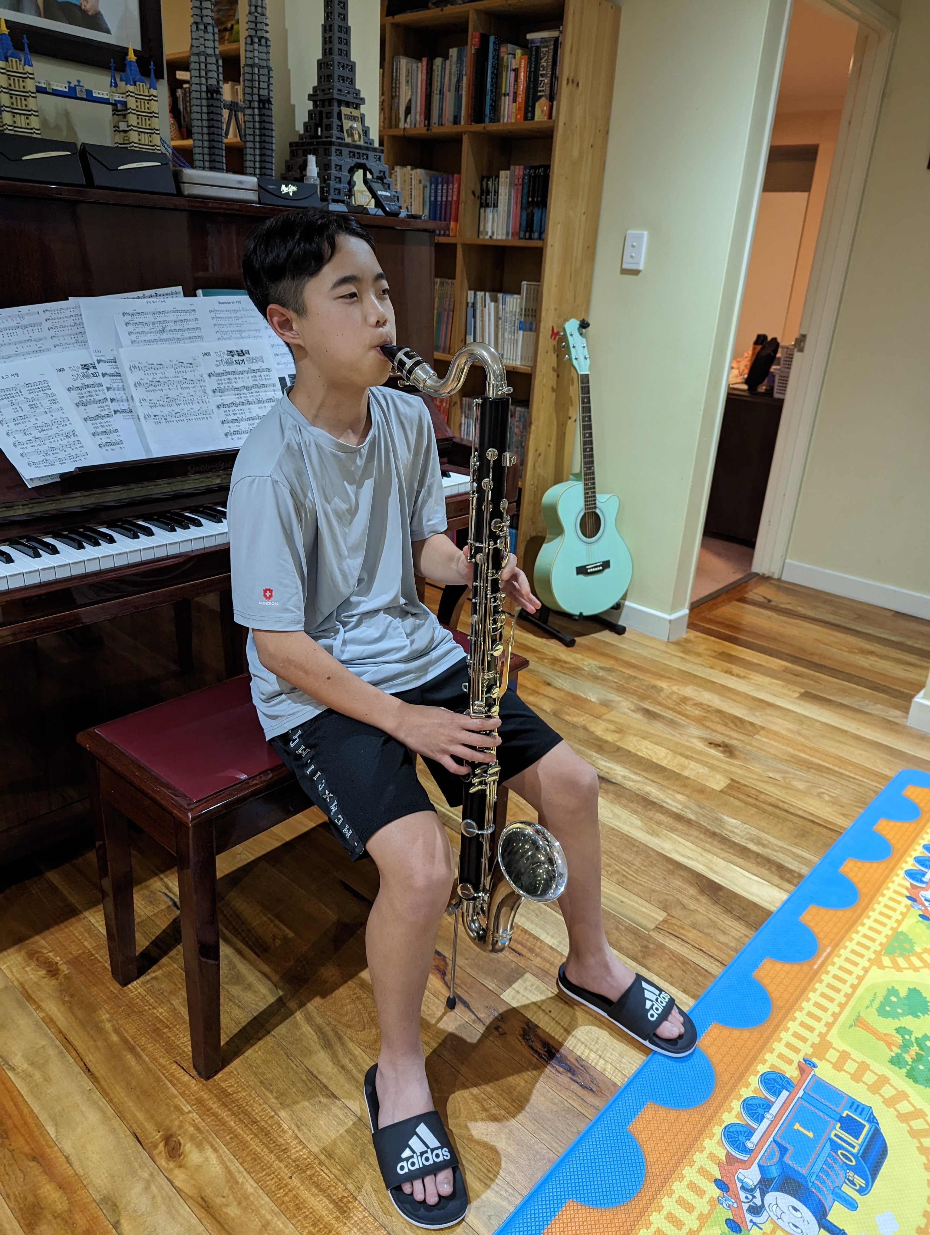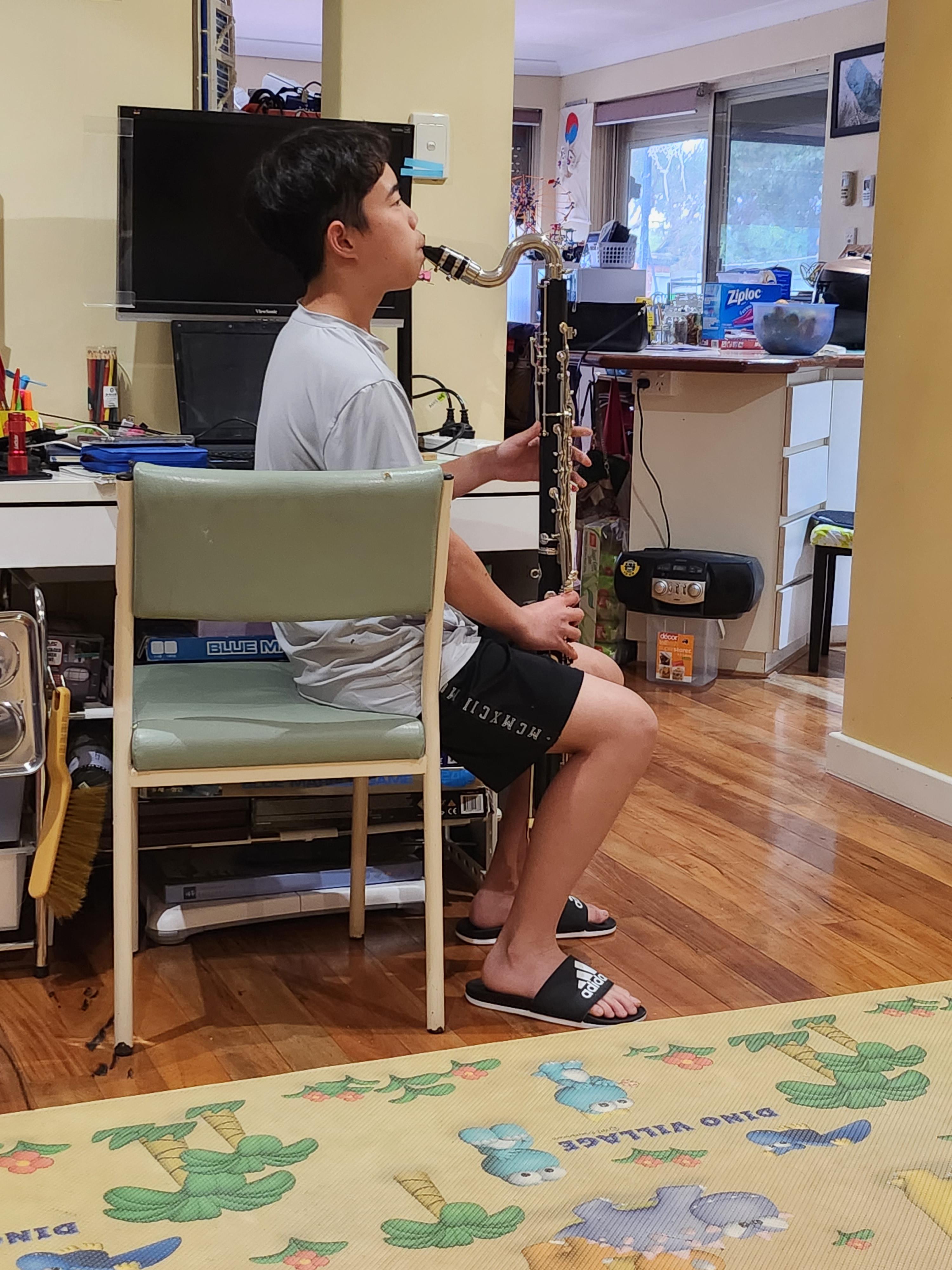 주헌이가 밴드에서 베이스 클라리넷을 하게됐다고...등치가 장난이 아니네.