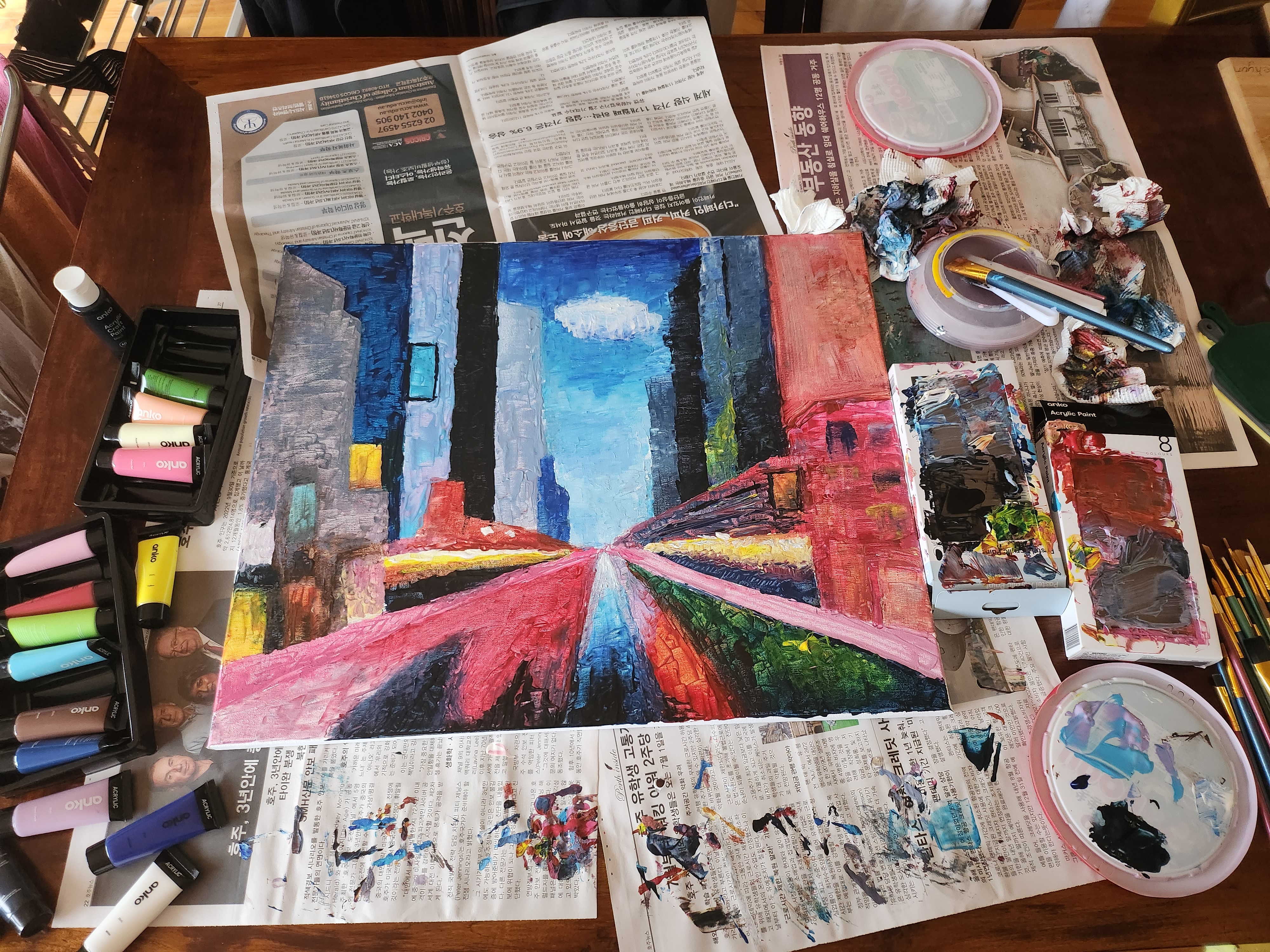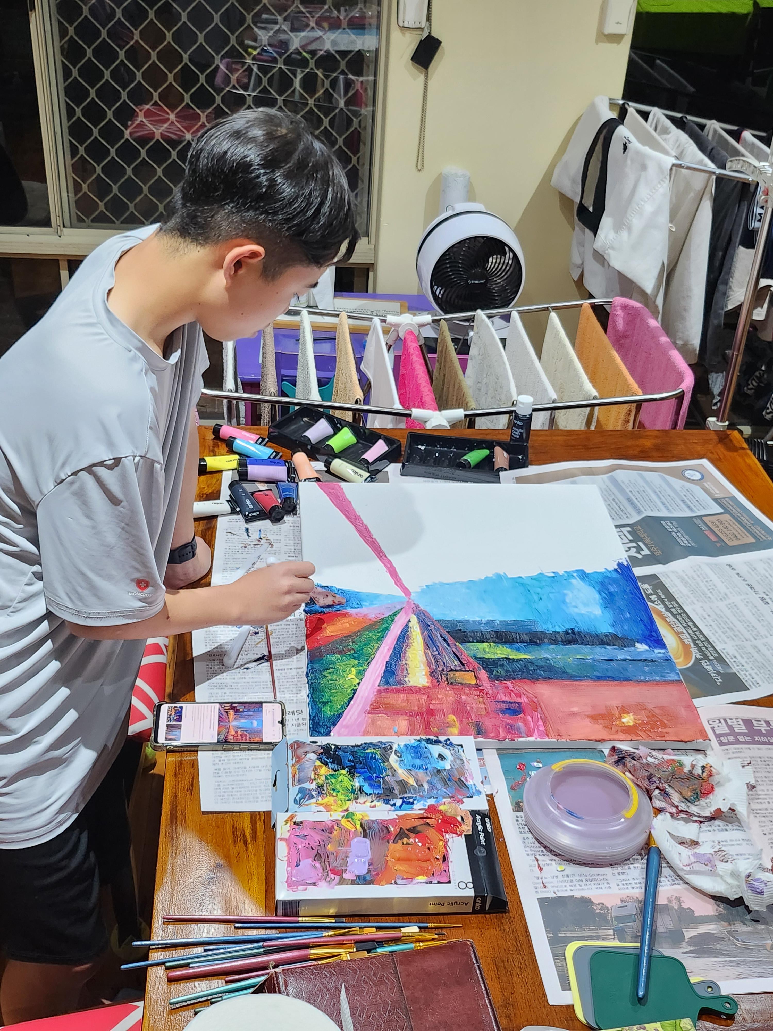집에서 한번 그려본다고 난리난리~그래도 하룻밤에 끝나서 다행이다. 그래서 학원 가서 그리는 거야~