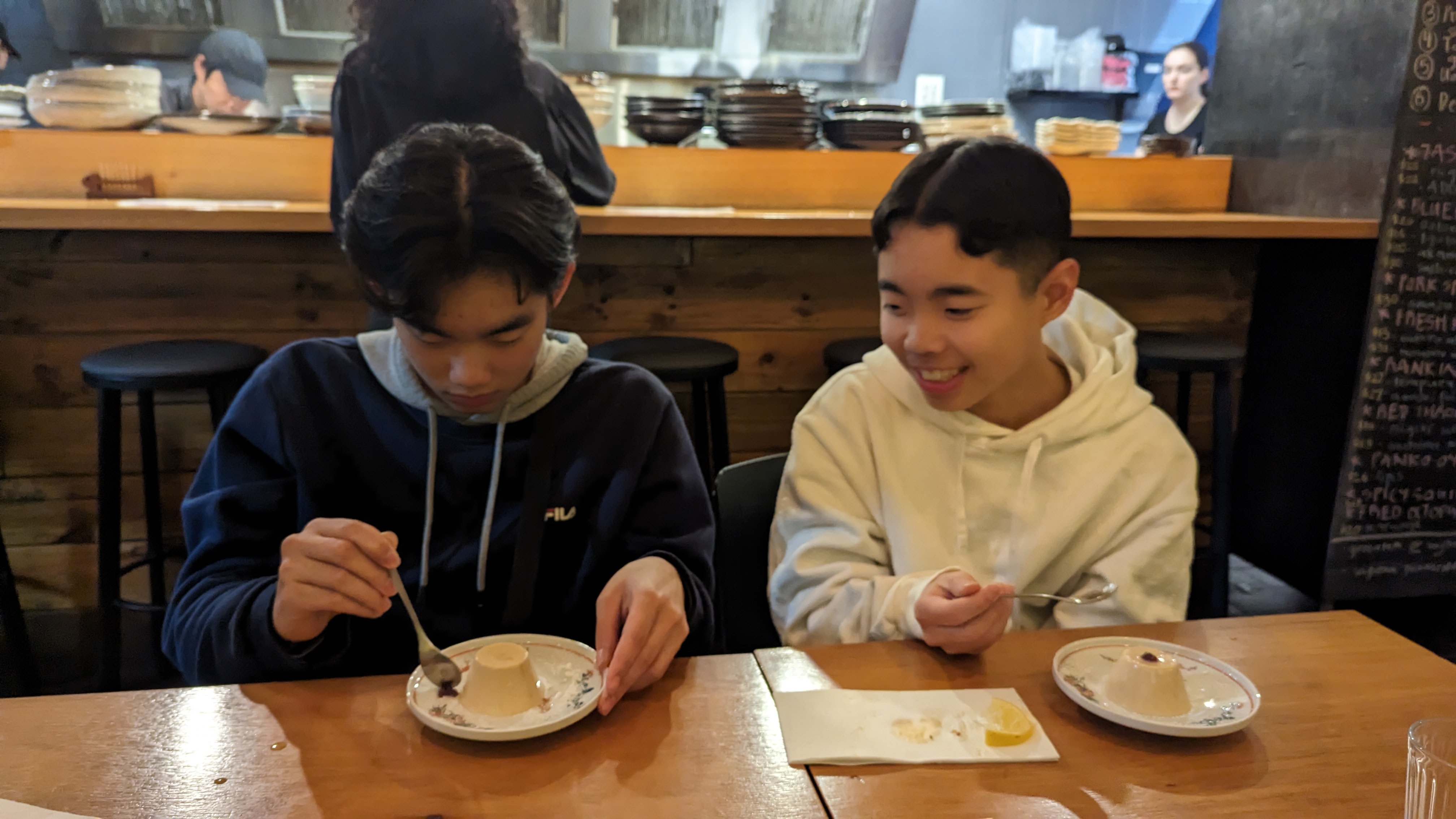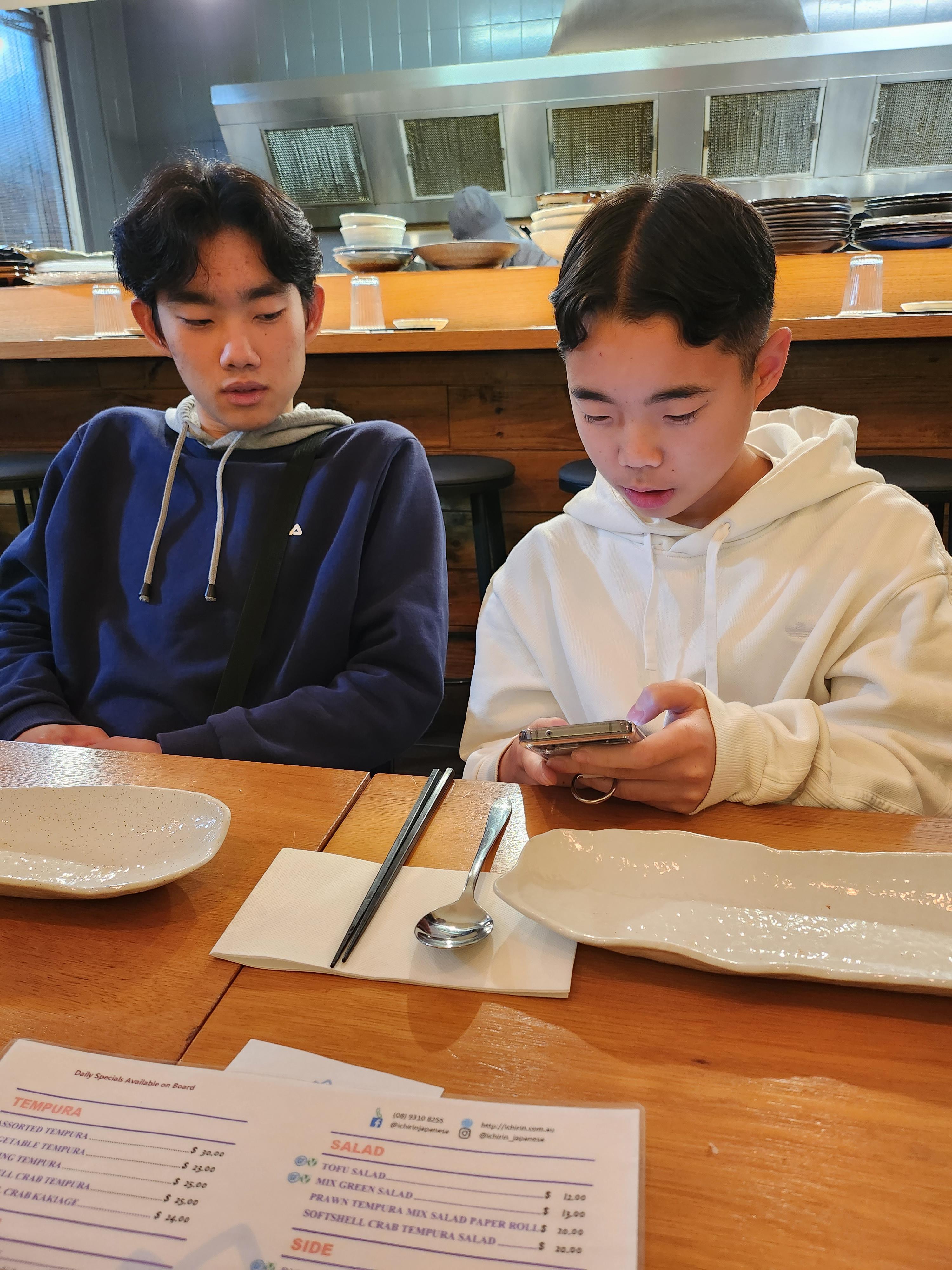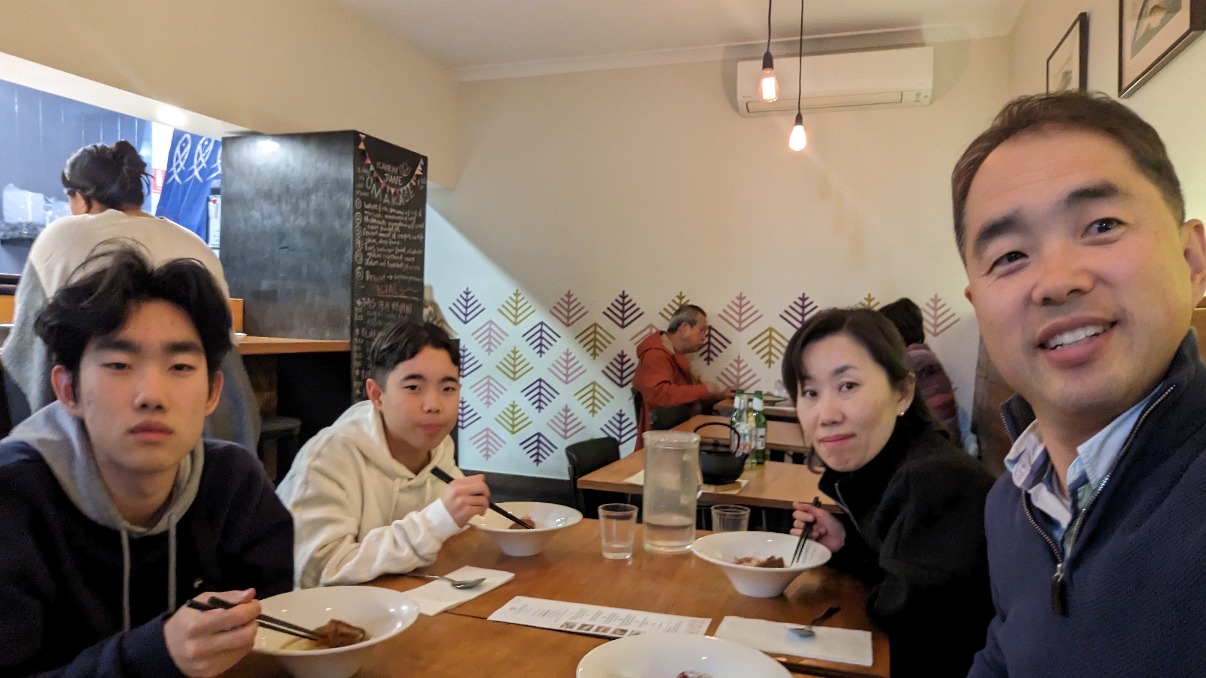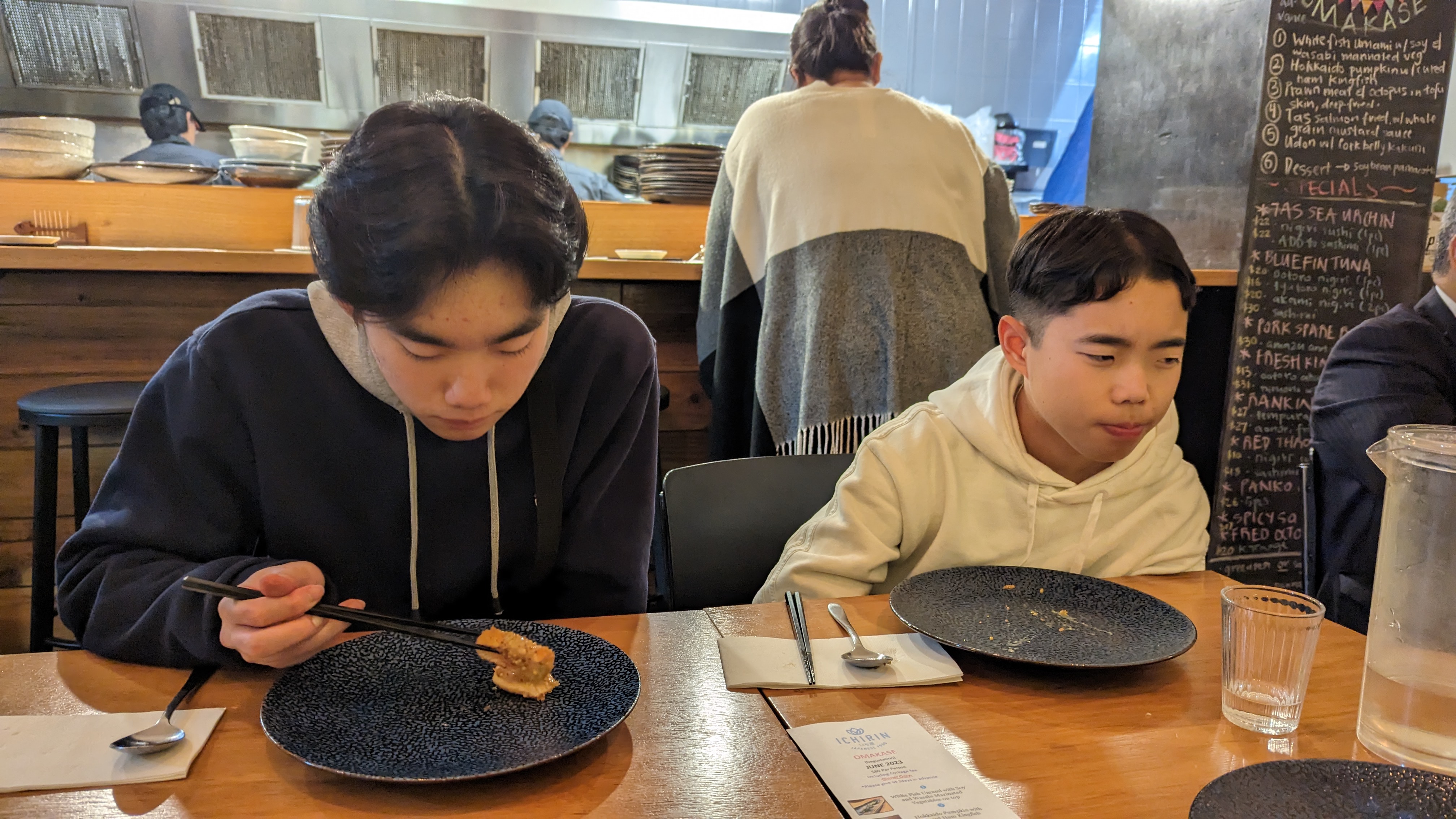 아빠엄마 결혼기념일. 일식집에서 코스요리로 다함께. 기다리는 중.