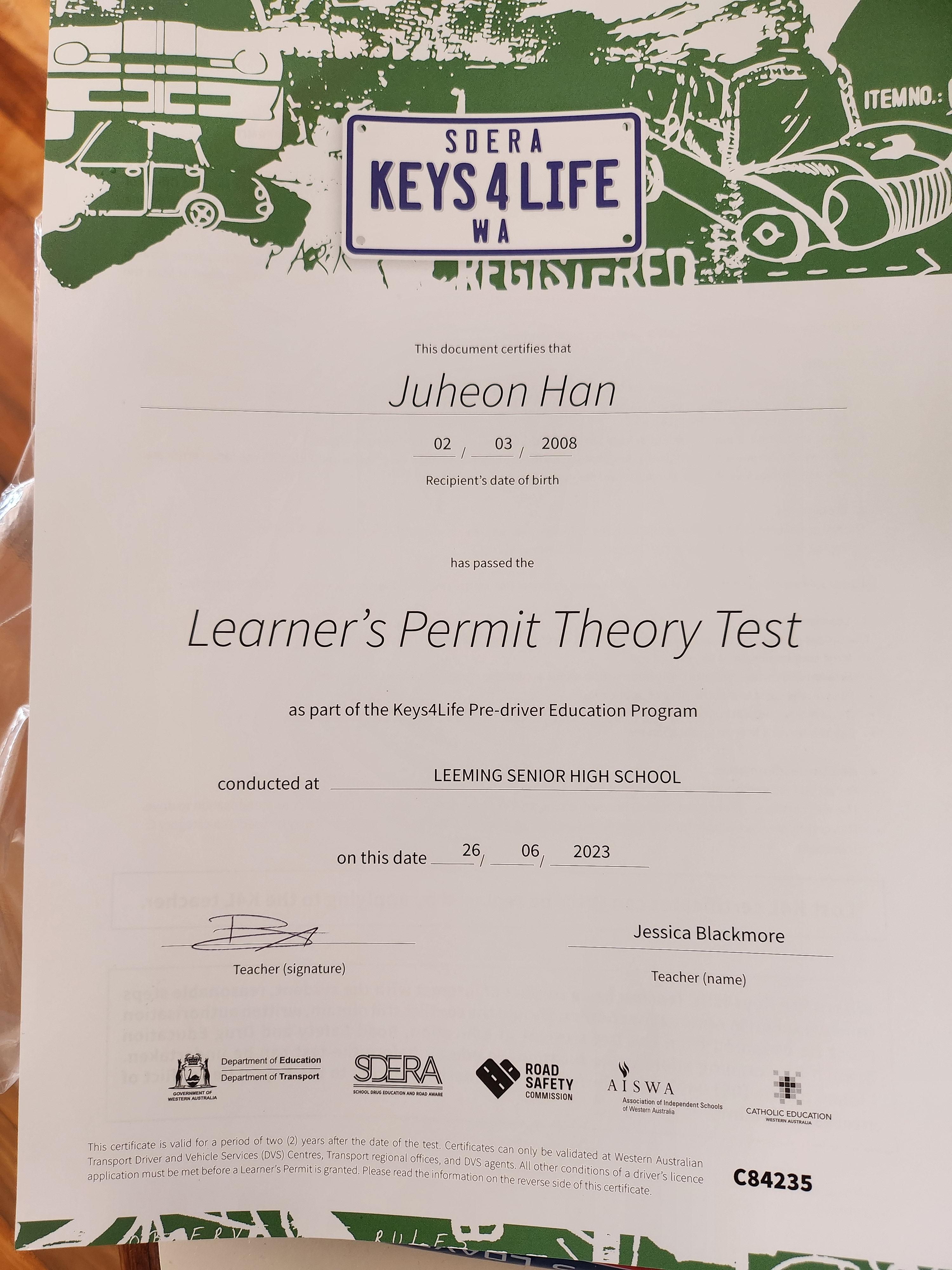 주헌이도 학교에서 운전면허 필기시험 합격. 다 컸네~