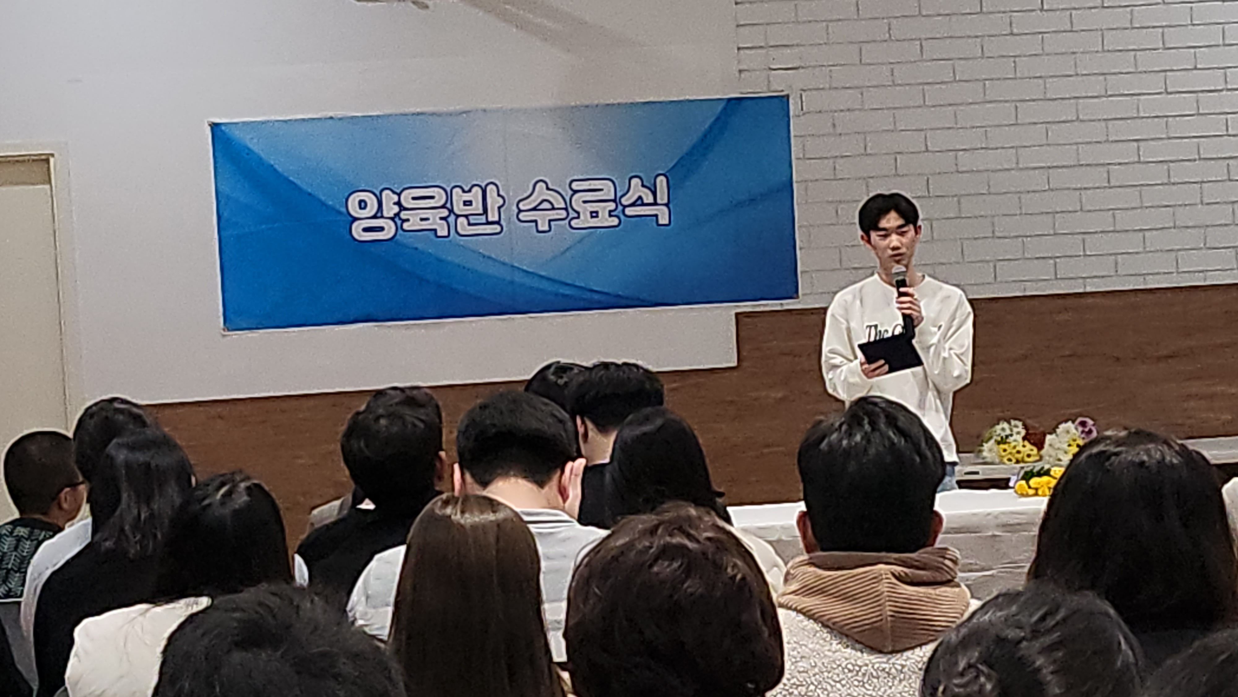 청년팀이 된 지웅이. 12주간의 양육반을 수료해서 부랴부랴 셀예배 끝나고 교회로 갔다.