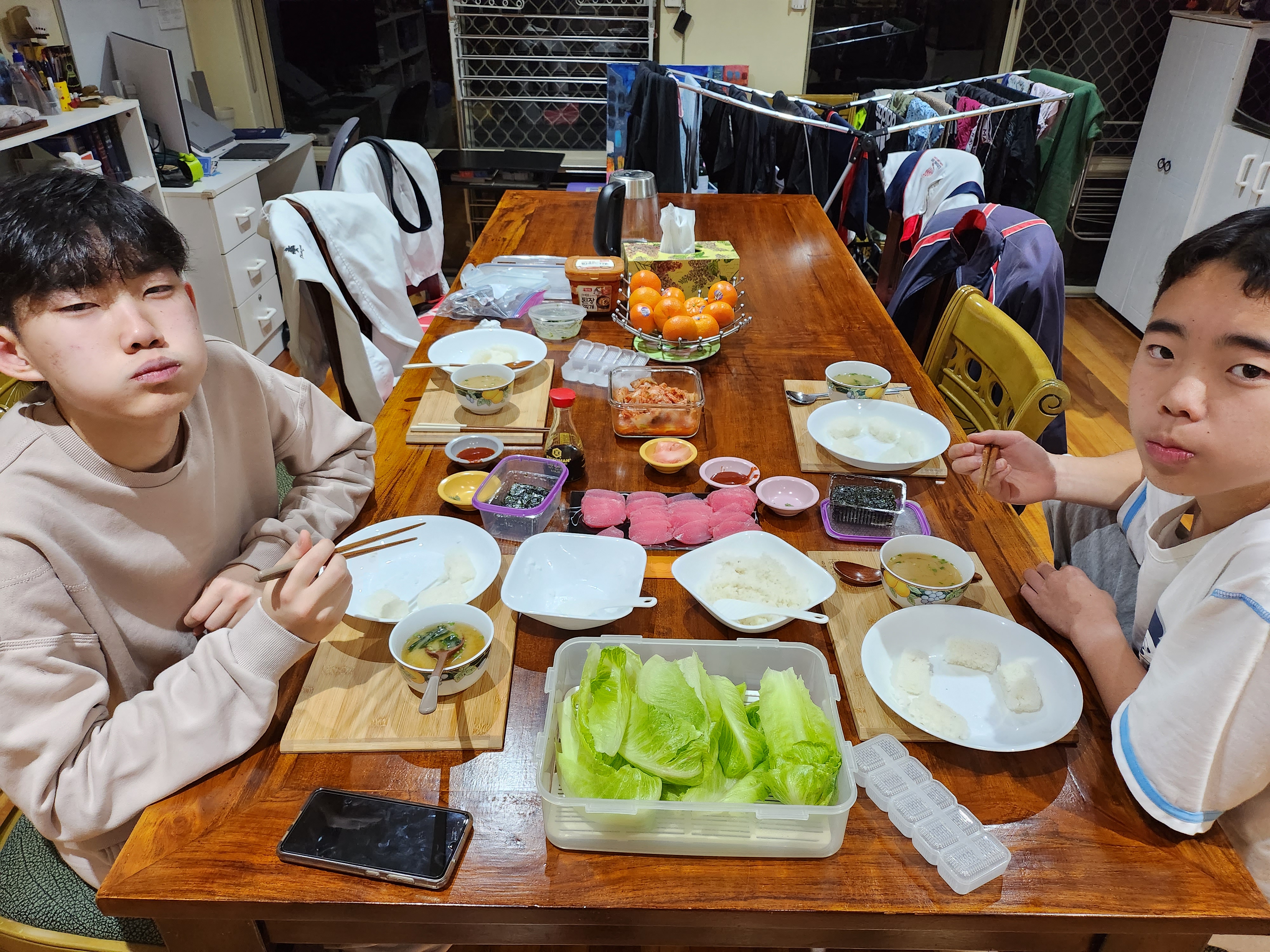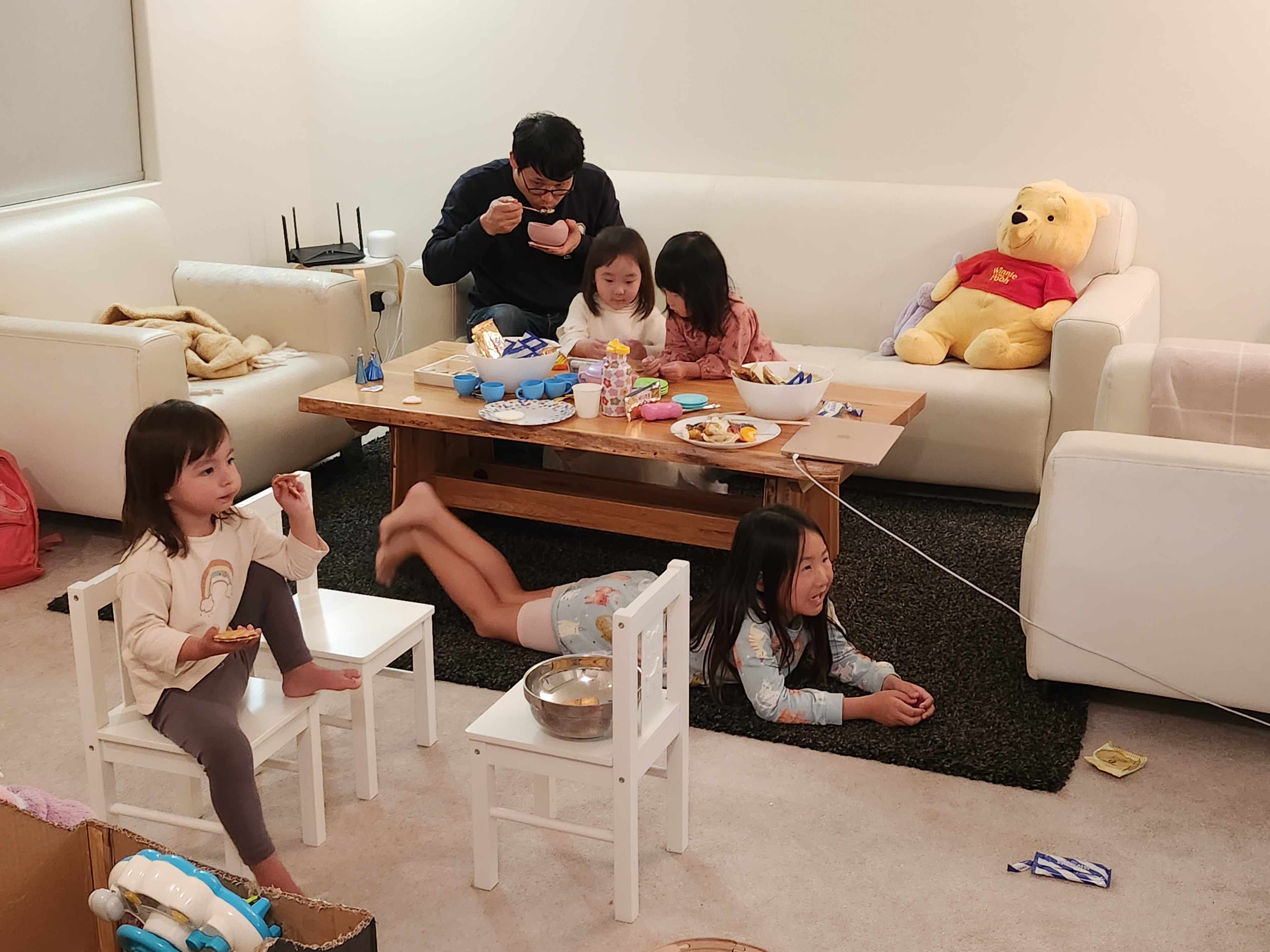 우리셀 성찬예배 후 저녁 식사하기. 각자 한접시씩 준비해서 모였어요.