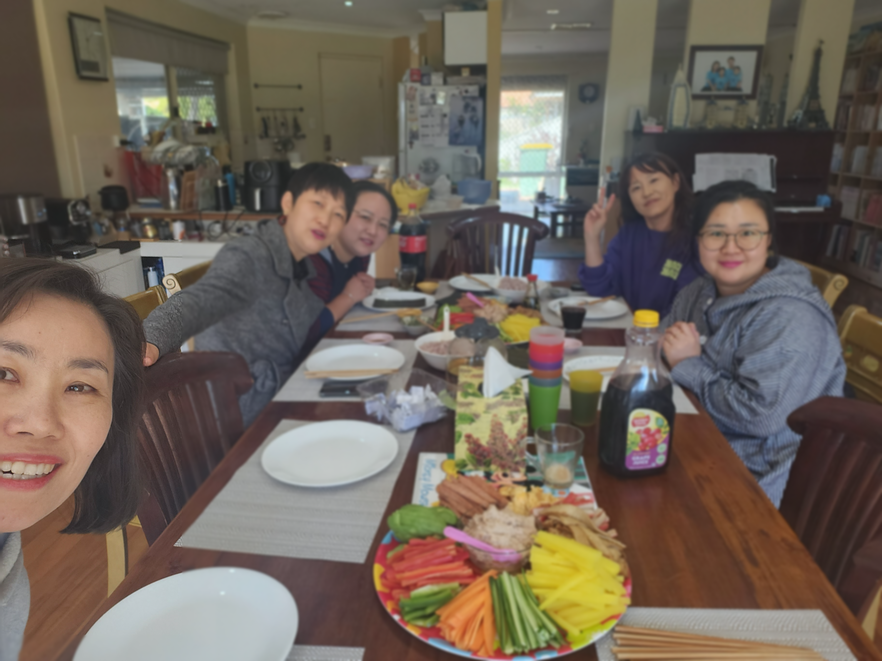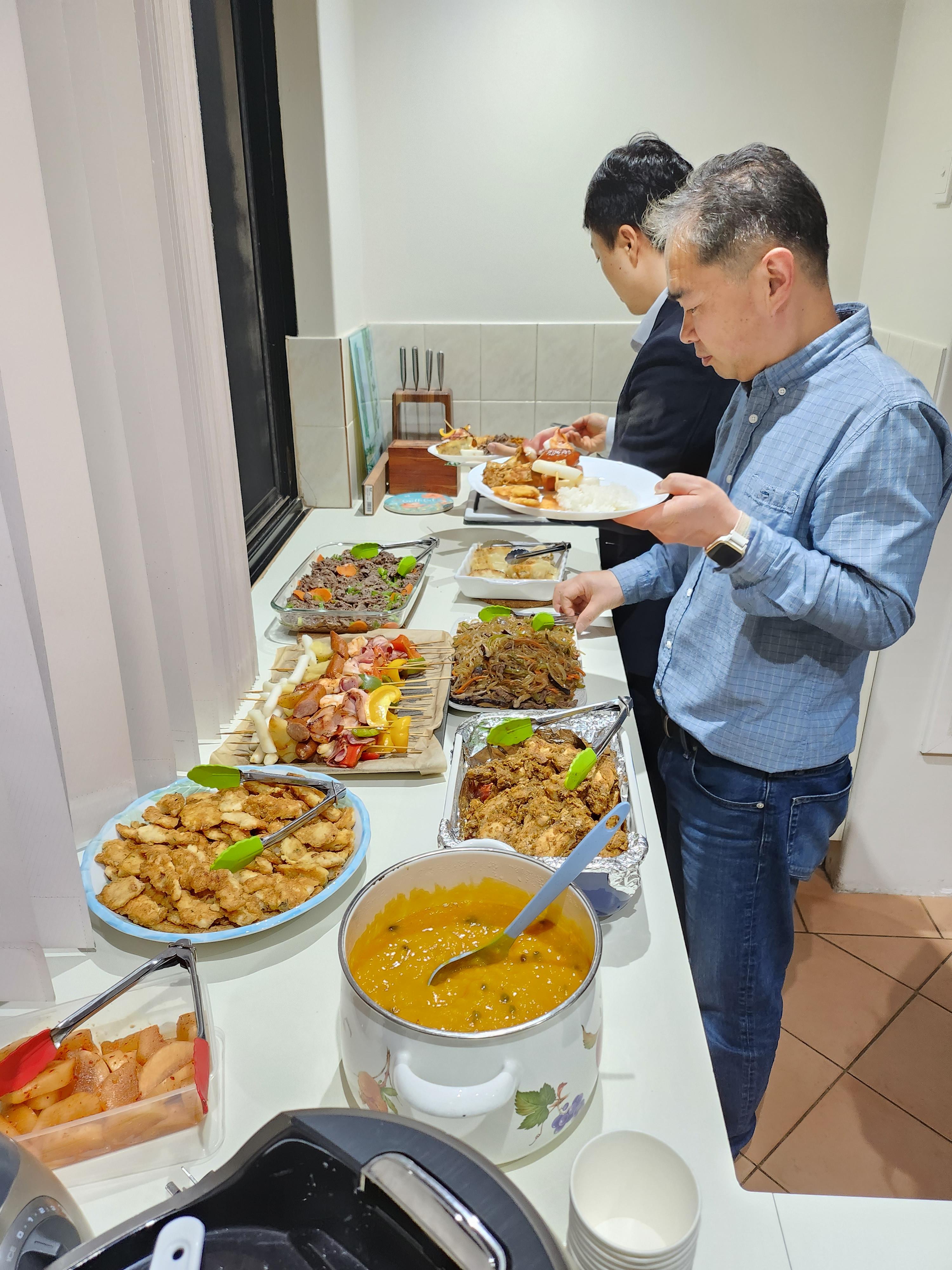 우리셀 성찬예배 후 저녁 식사하기. 각자 한접시씩 준비해서 모였어요.