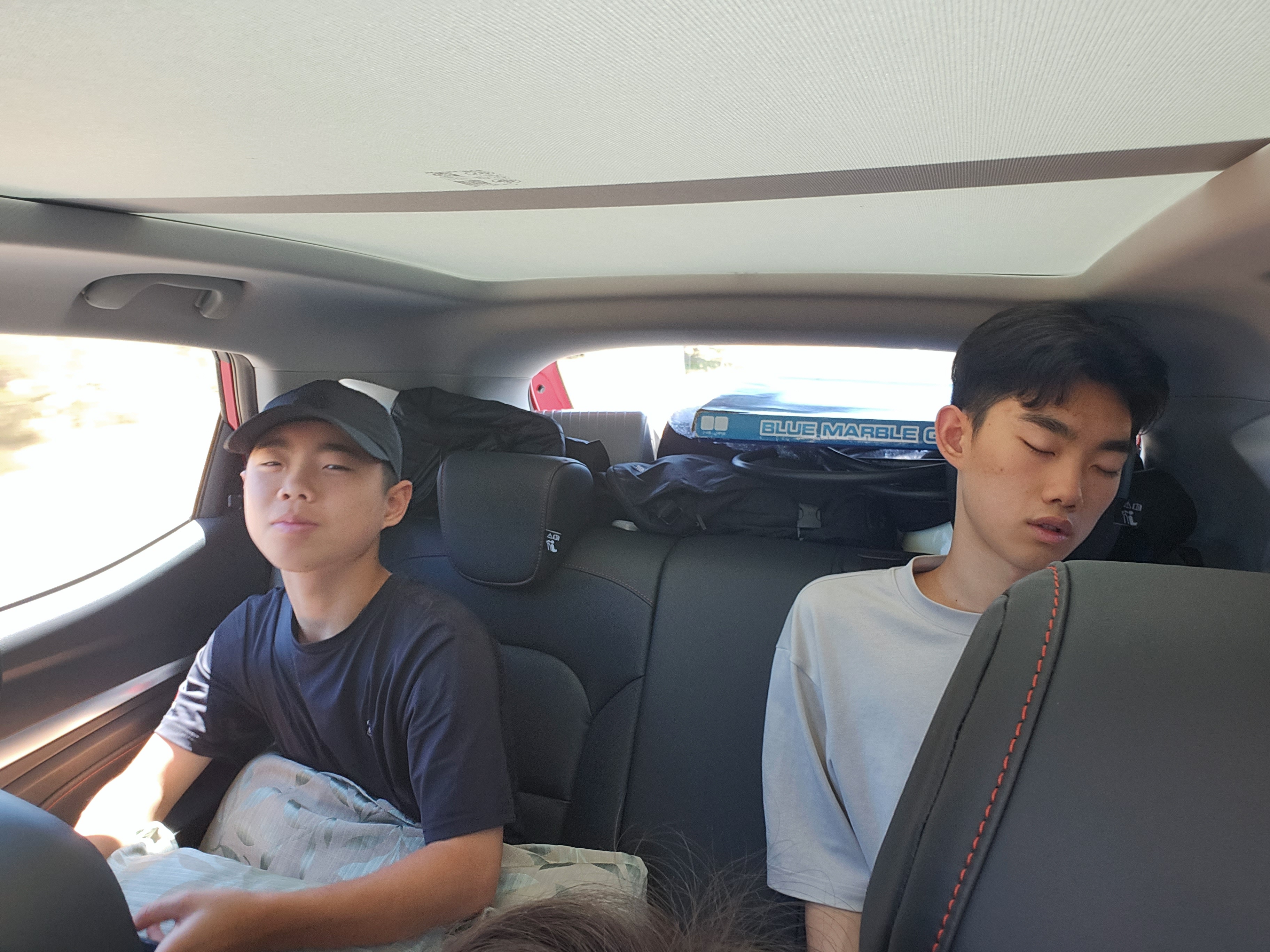 출발 하자마자 다시 잠든 지웅.ㅋㅋ