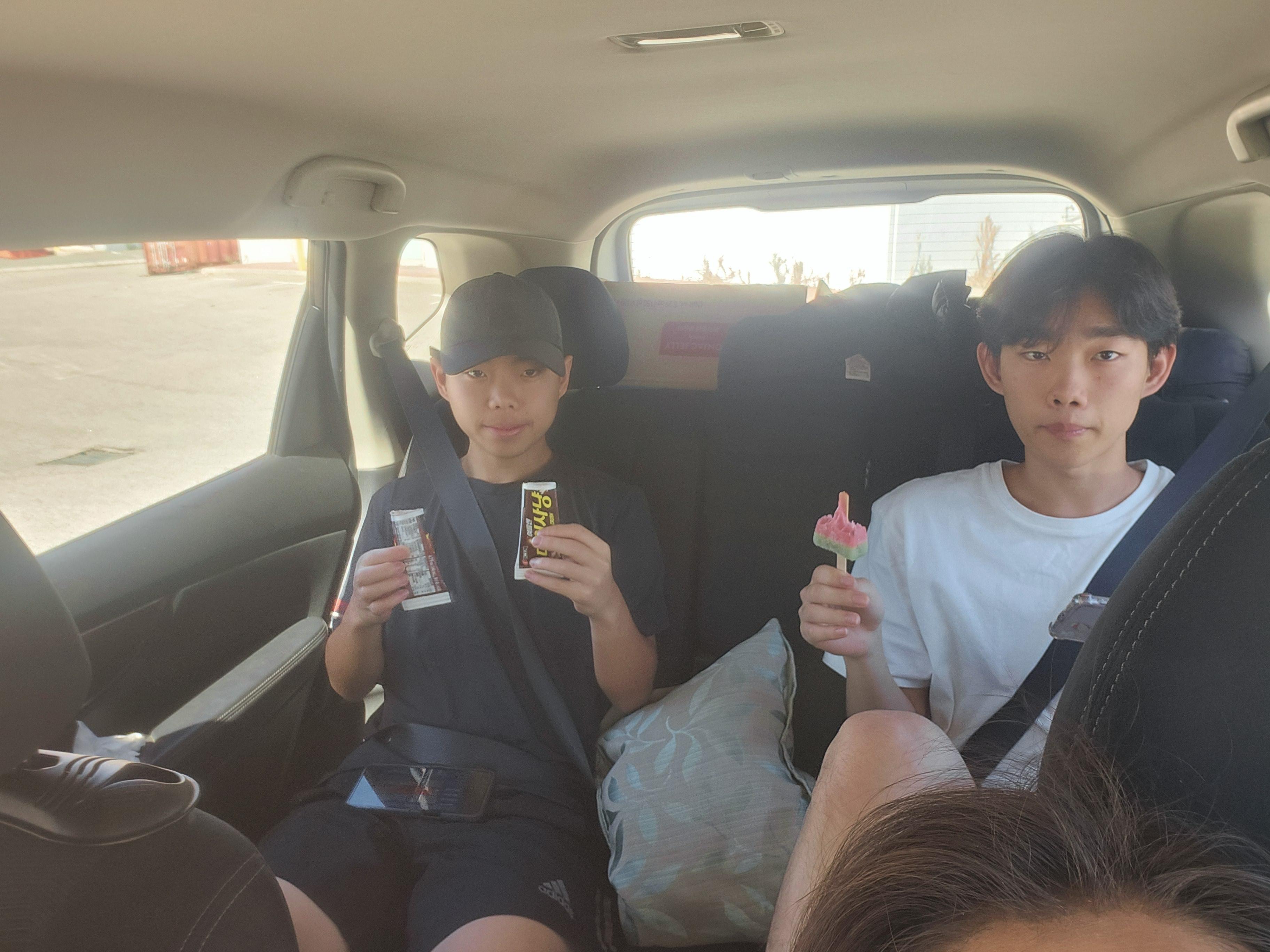 한국마트에 들러 장보고 아이스크림 하나씩 물고 출발~
