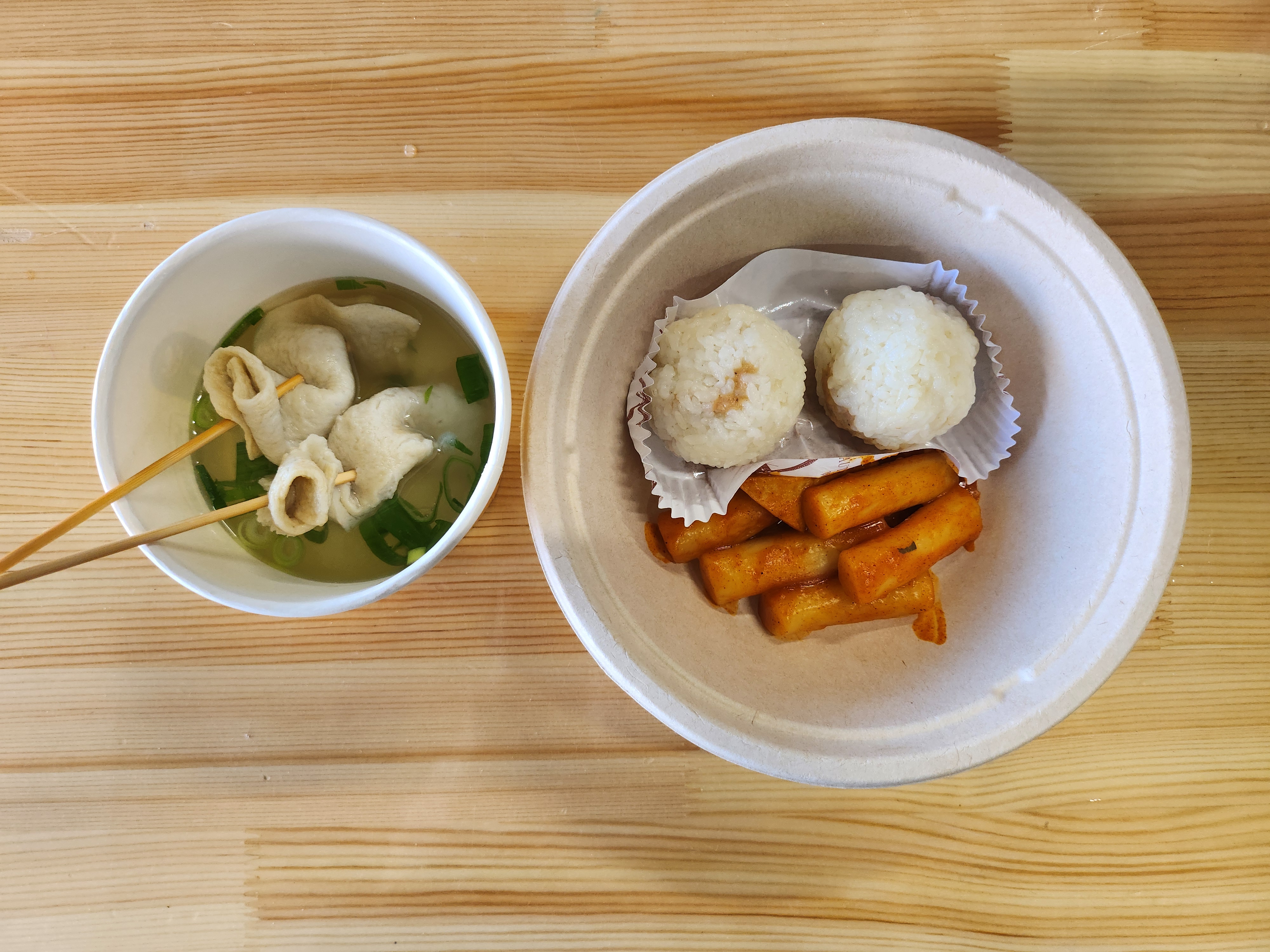 점심메뉴 떡볶이, 참치주먹밥, 어묵꼬지