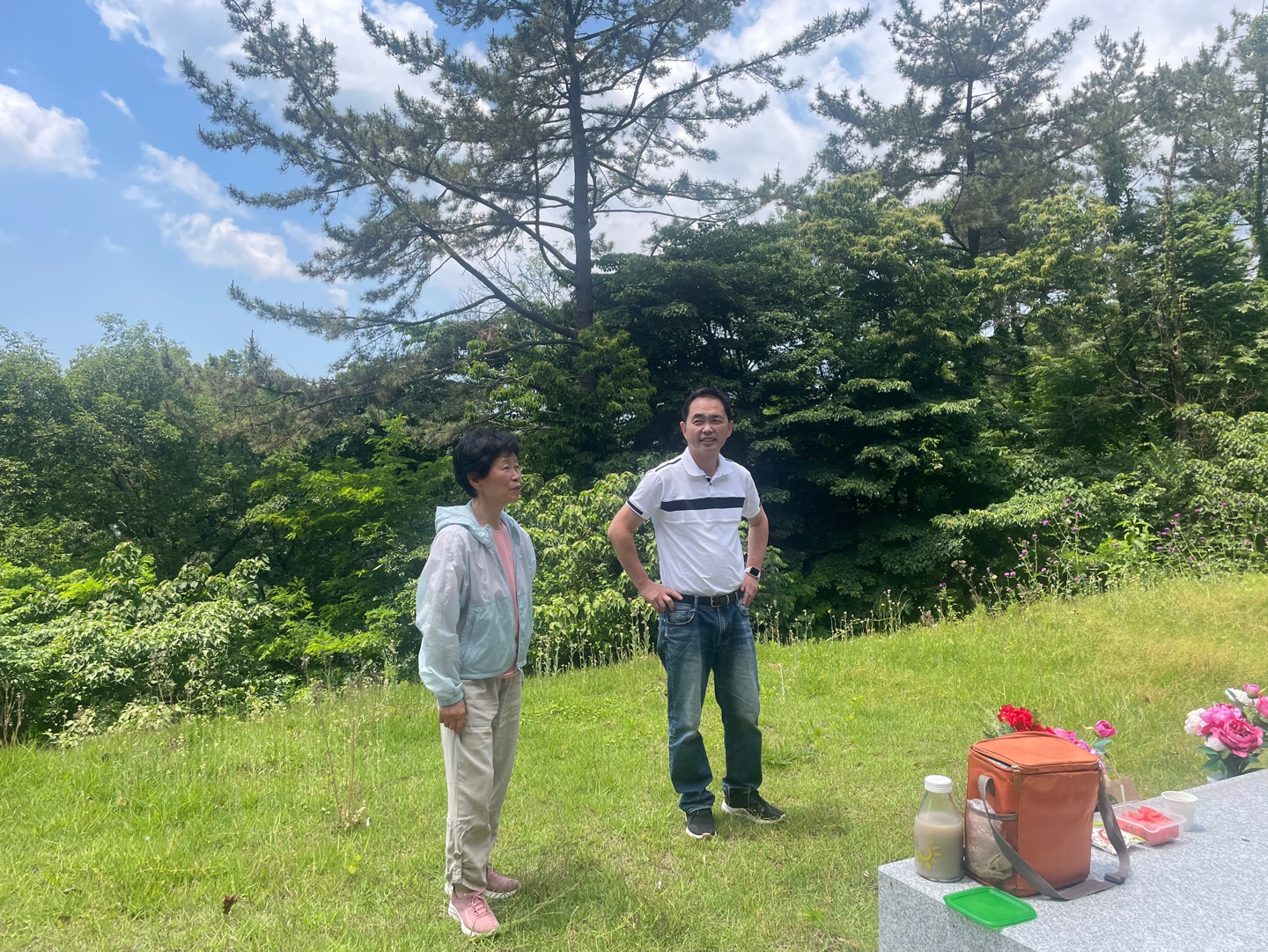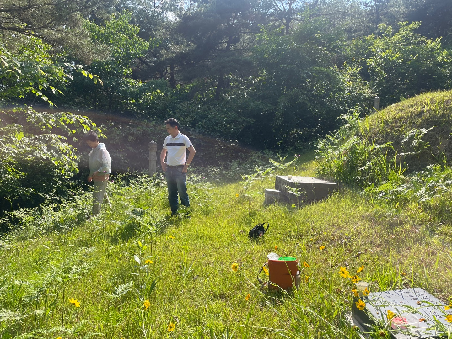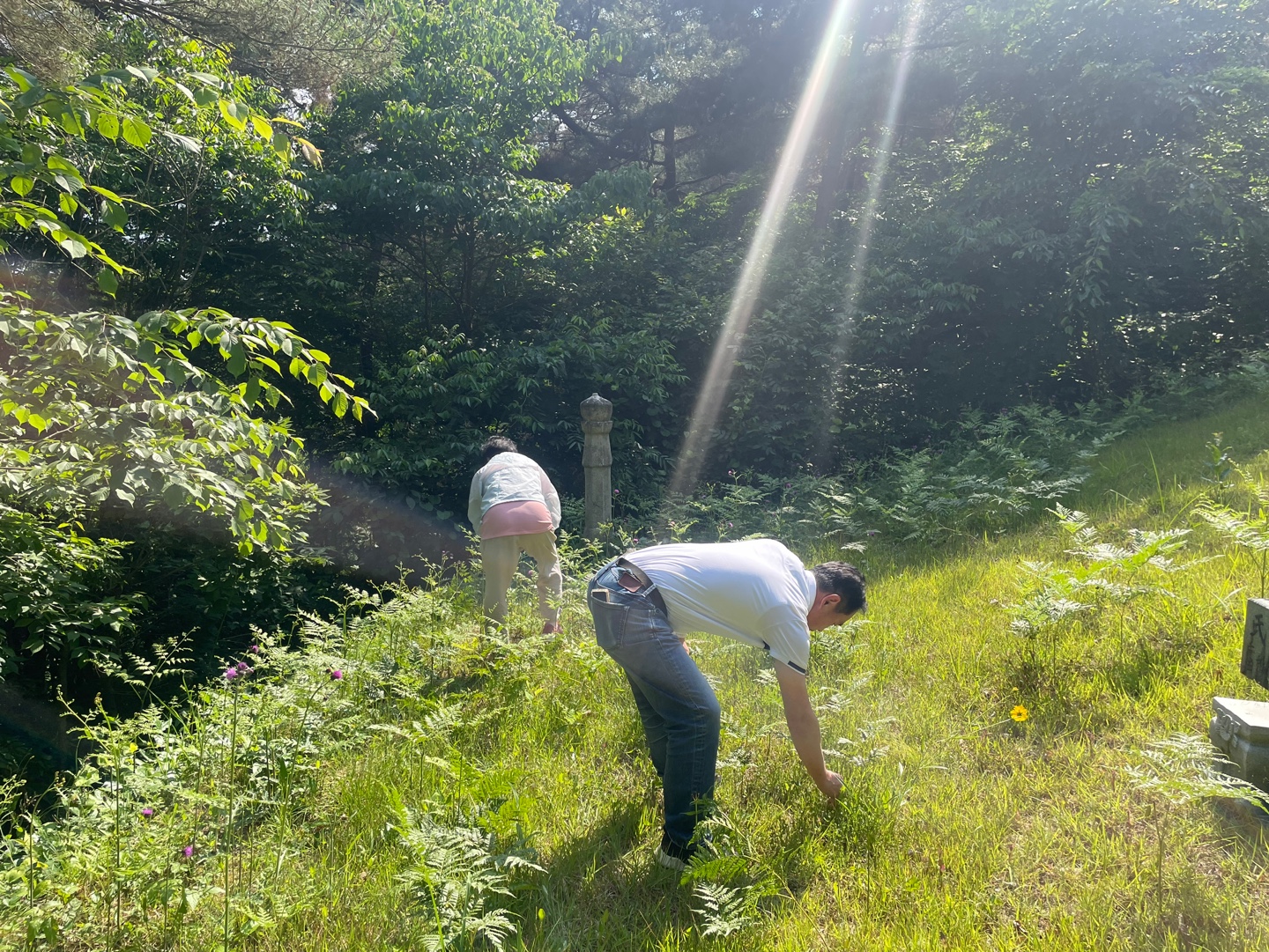 배 든든히 채우고 장안 외할머니 산소에 들렀다. 고사리가 여기저기 많아서 우리 엄니 또 열심히 어린순을 꺽고 계신다.