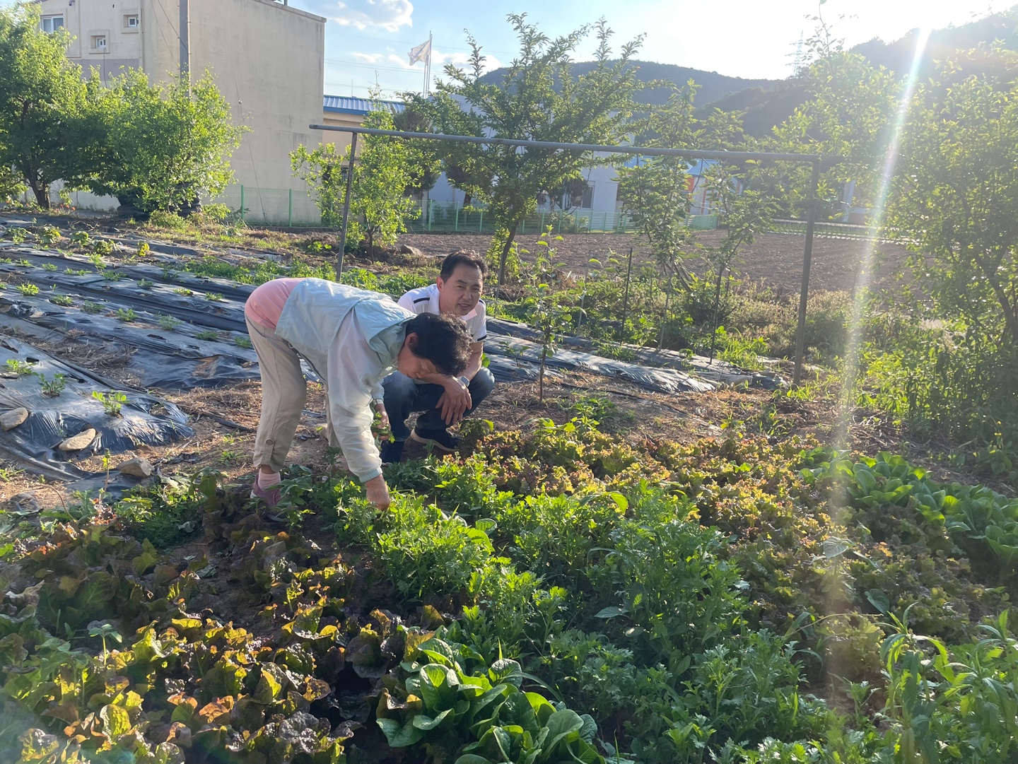 화요일 마지막 일정은 화순 매제네 카센터 뒤 텃밭. 열심히 상추랑 깻잎 수확