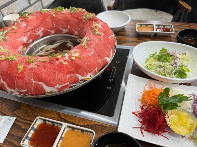수요일(5월29일)엔 점심때 작은어머니께서 수완지구에 있는 메밀당막국수에서 맛난 샤브샤브 겸 월남쌈을 먹었다. 고기빼고 샤브샤브 재료(야채.만두.면 등등)는 무한리필인데 훌륭함. 저 샤브샤브 냄비 대박인데 퍼스 사갈려고 검색했더니 9만원정도 하네. 퍼스 가서 나중네 차붐히 알아봐야겠다. 첨엠 고기가 저렇게 많나 했는데 밑에는 숙주 ㅎㅎ