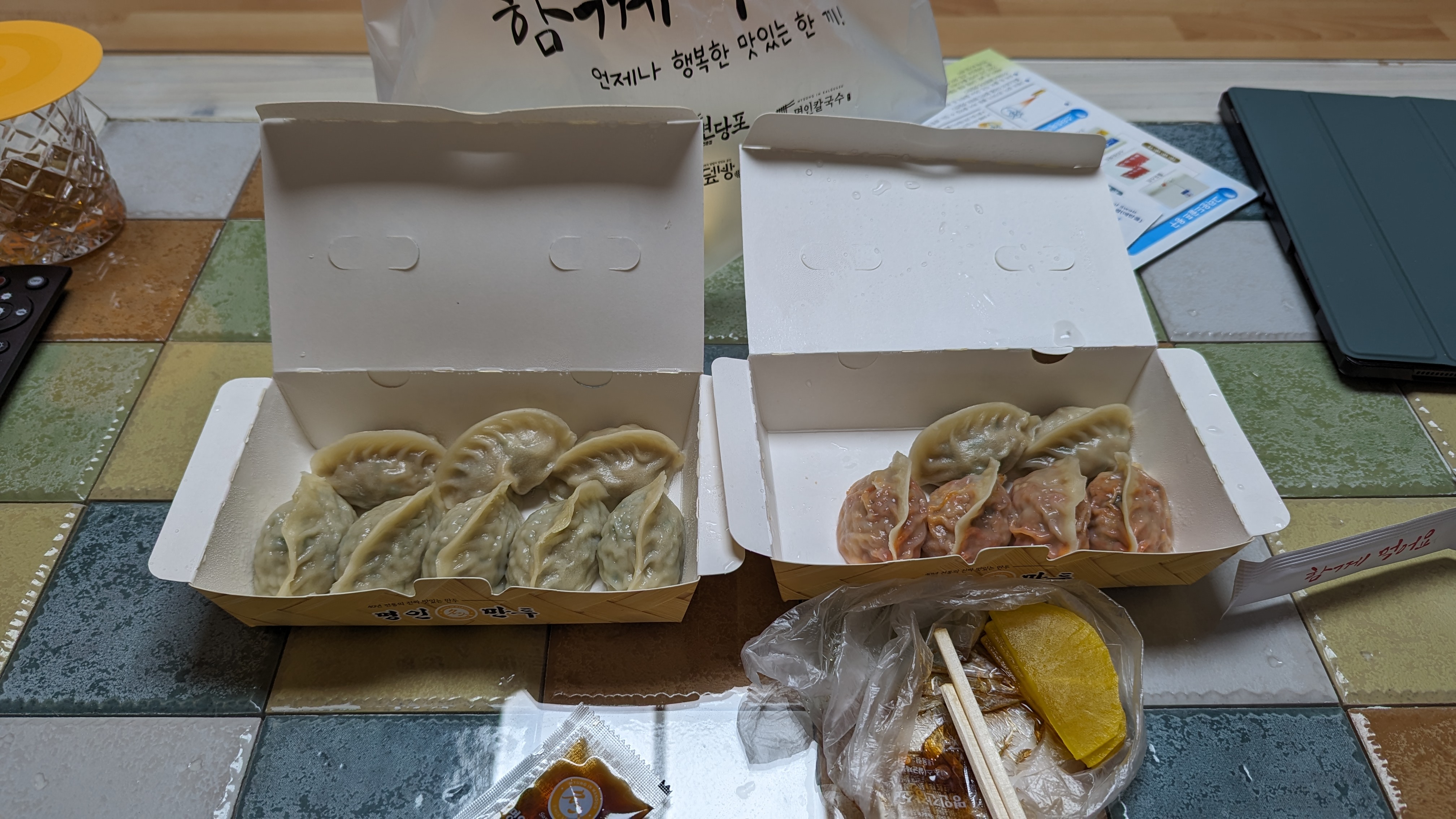 저녘에는 또 출출해서 집앞에 있는 만두가게에서 포장해왔다.