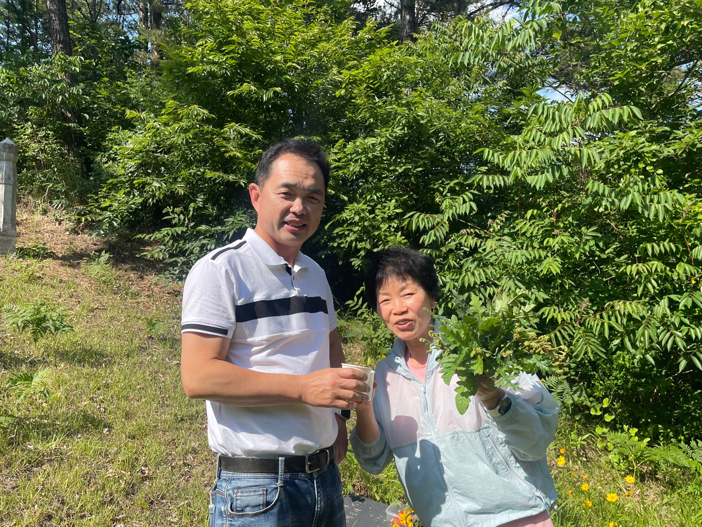 배 든든히 채우고 장안 외할머니 산소에 들렀다. 고사리가 여기저기 많아서 우리 엄니 또 열심히 어린순을 꺽고 계신다.