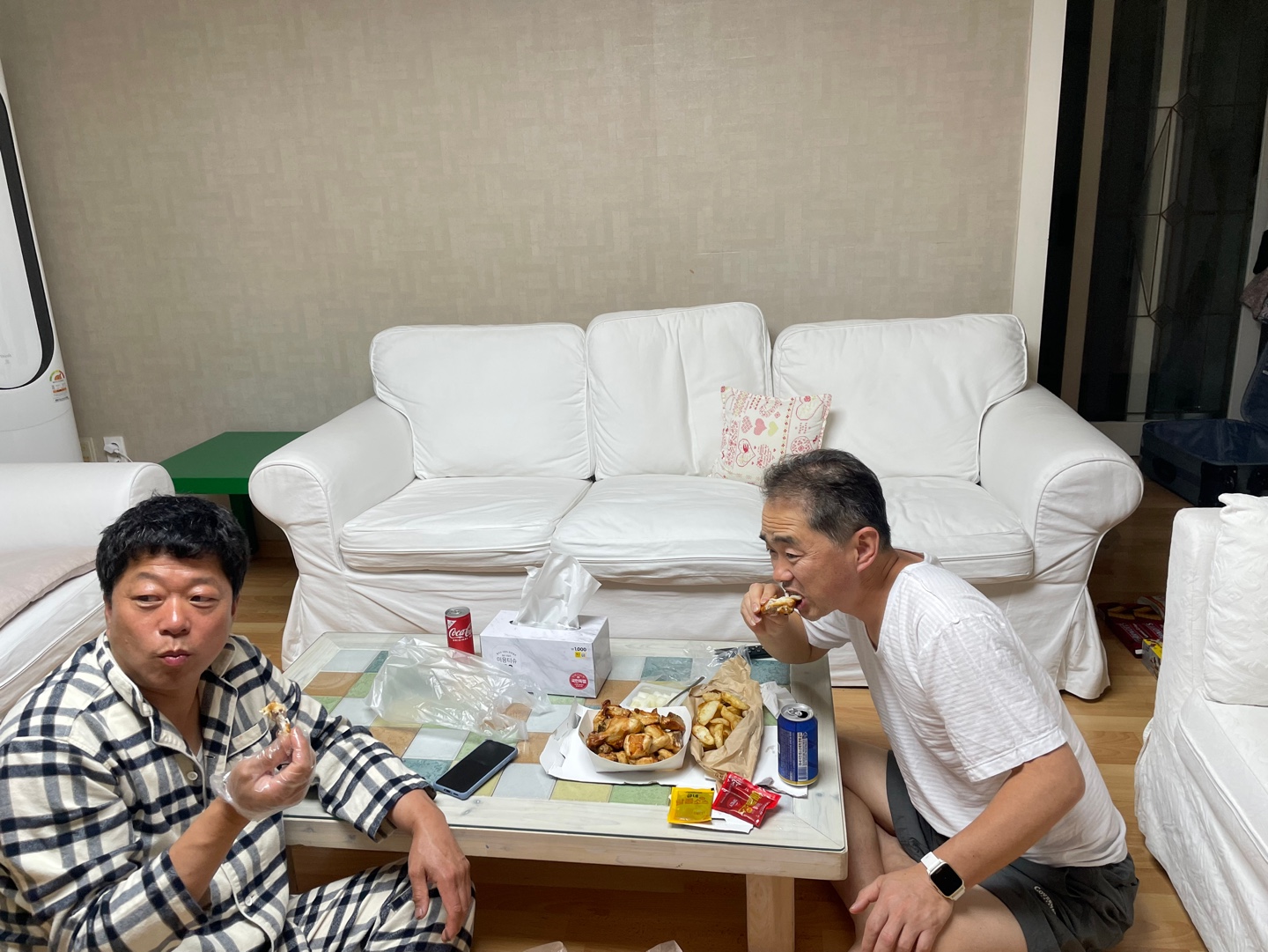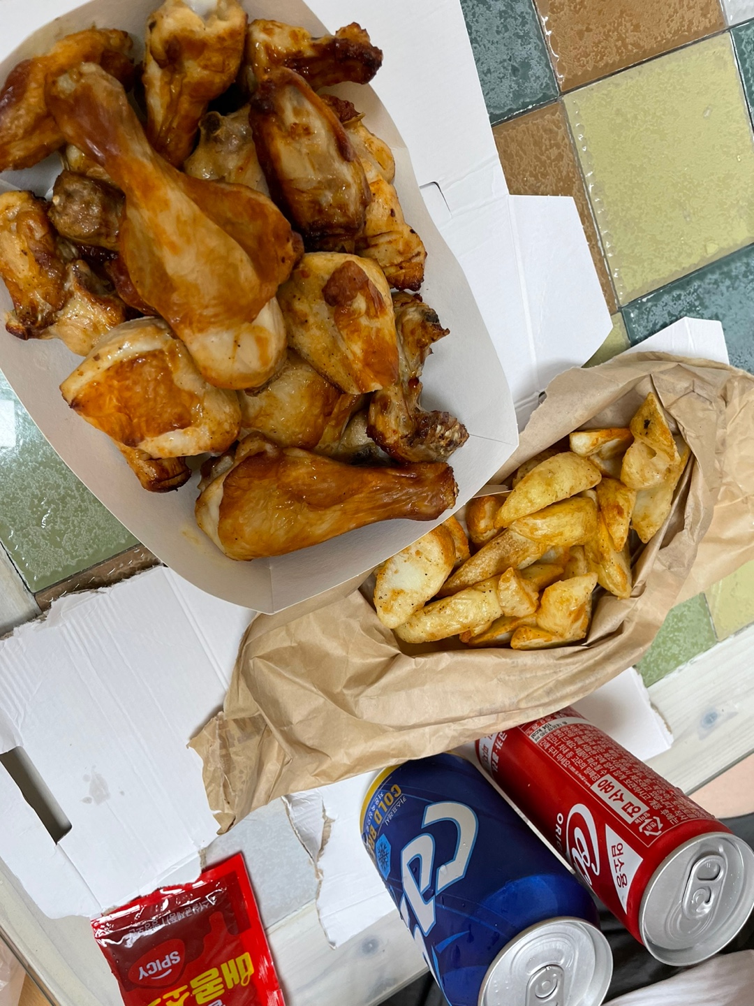 지아의 구박과 잔소리에도 불구하고 굽네치킨 바로 시킴 ㅎㅎ(일반 통닭 시킬려했는데 화요일 아침이 건강 검진이라 구운통닭으로 타협 ㅋㅋ)
