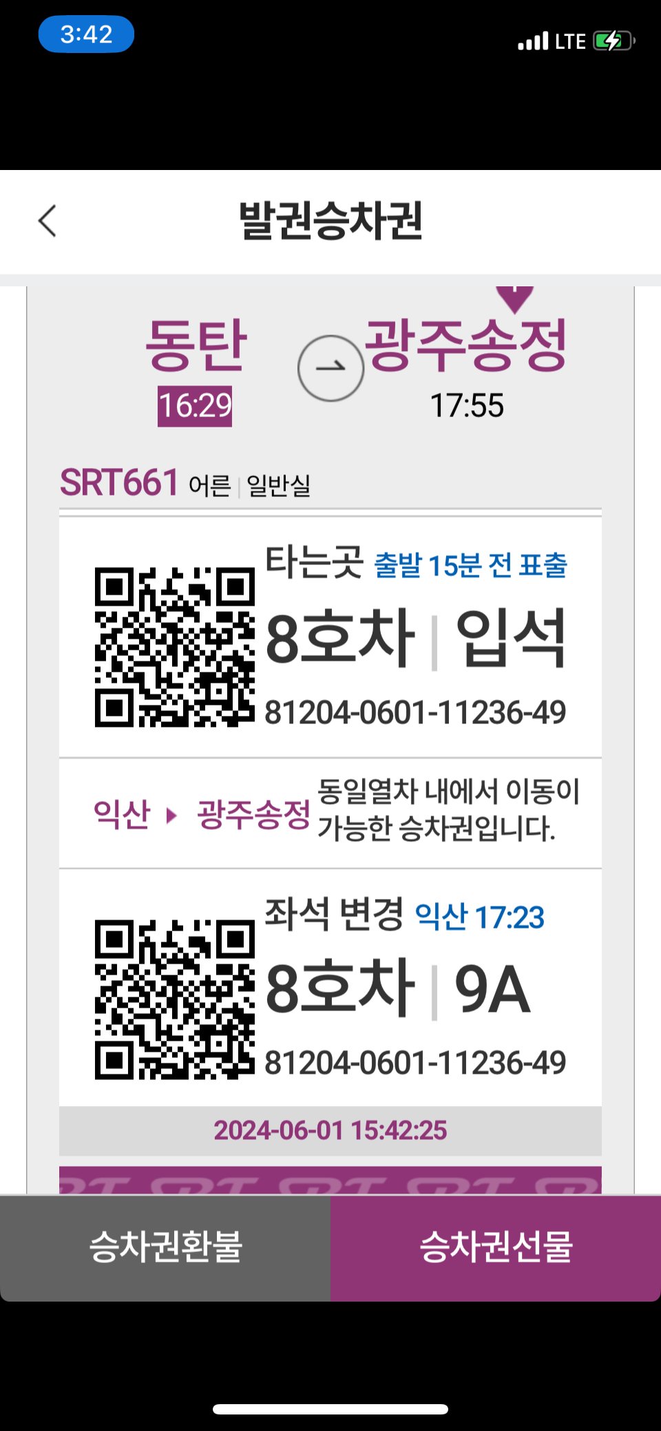 검나 빠르다 1시간 반밖에 안걸리네. ㅎㅎ 송정역에서 풍암동 집에가는 버스도 바로 있고. 풍암동 지하철역 뚤리면 더 빨리 집에가고 좋겠다.