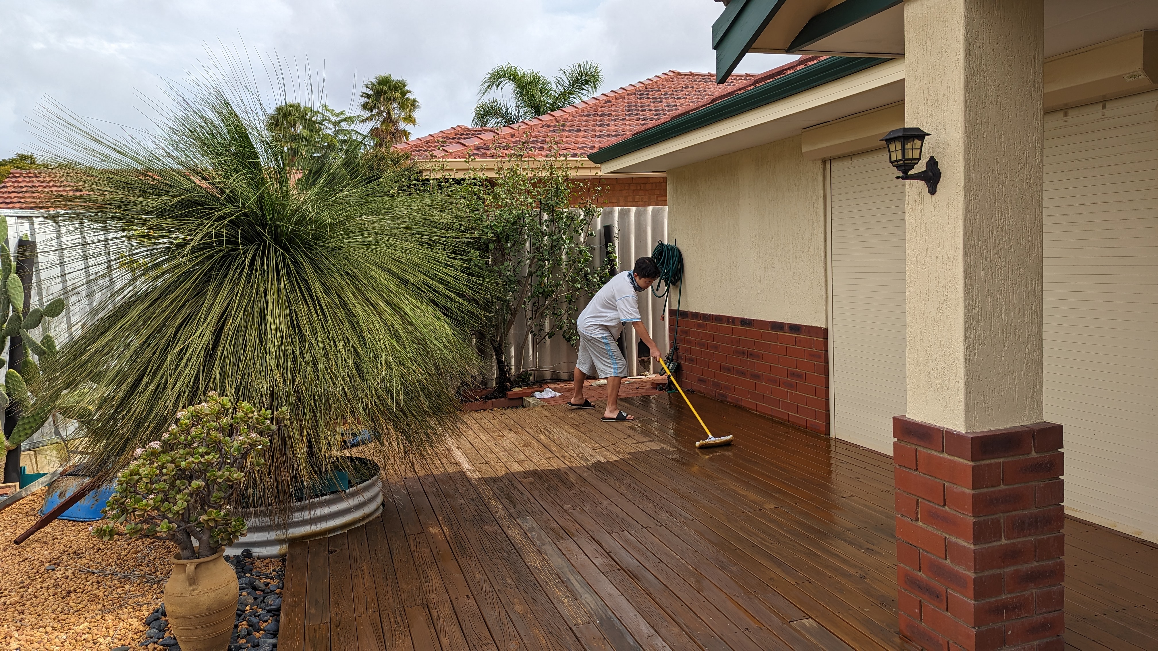 집에서 쉬다가 아빠한테 끌려나와 앞마당 칠하는 중.