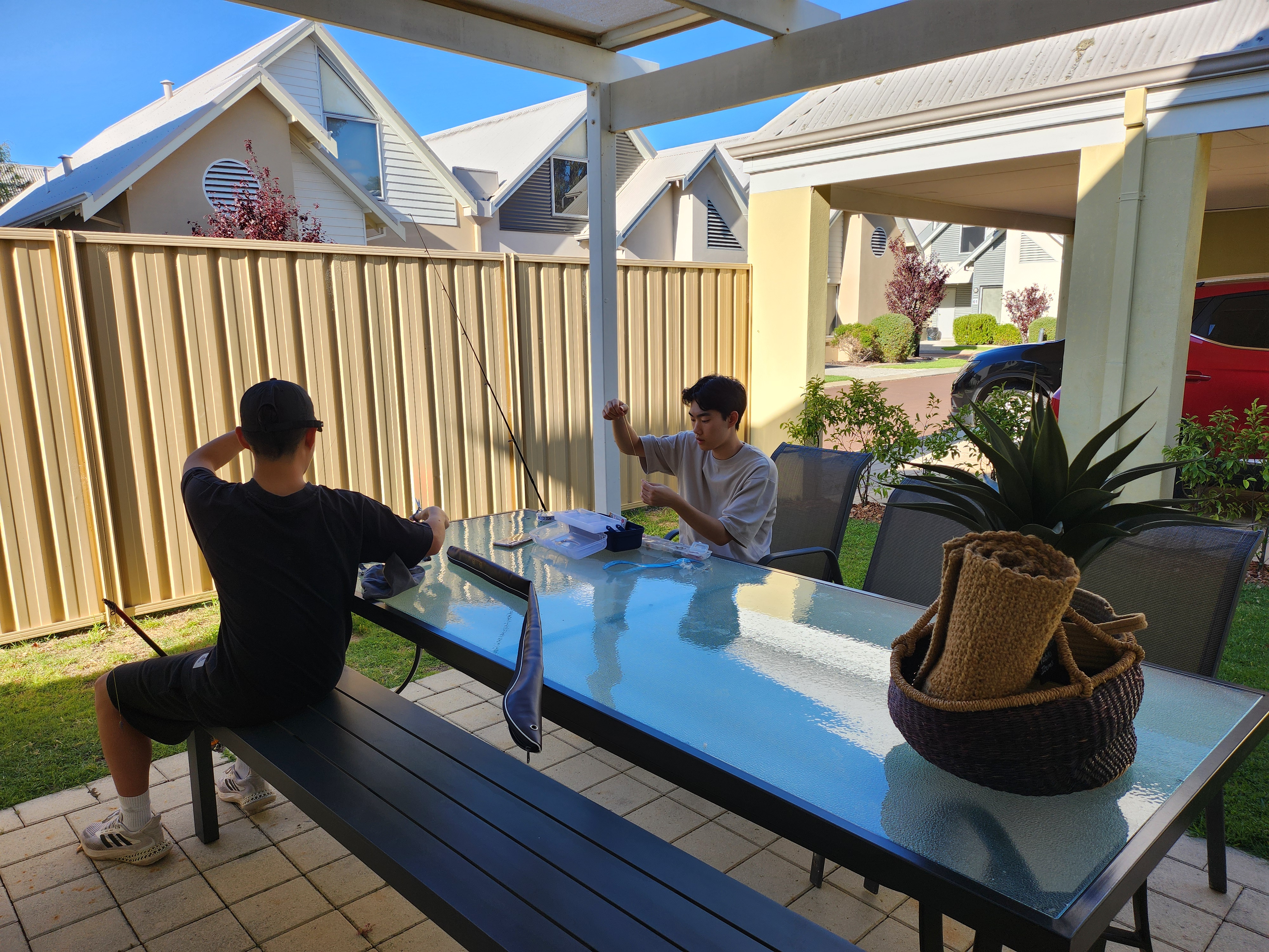 숙소에 도착해서 낚시 준비중