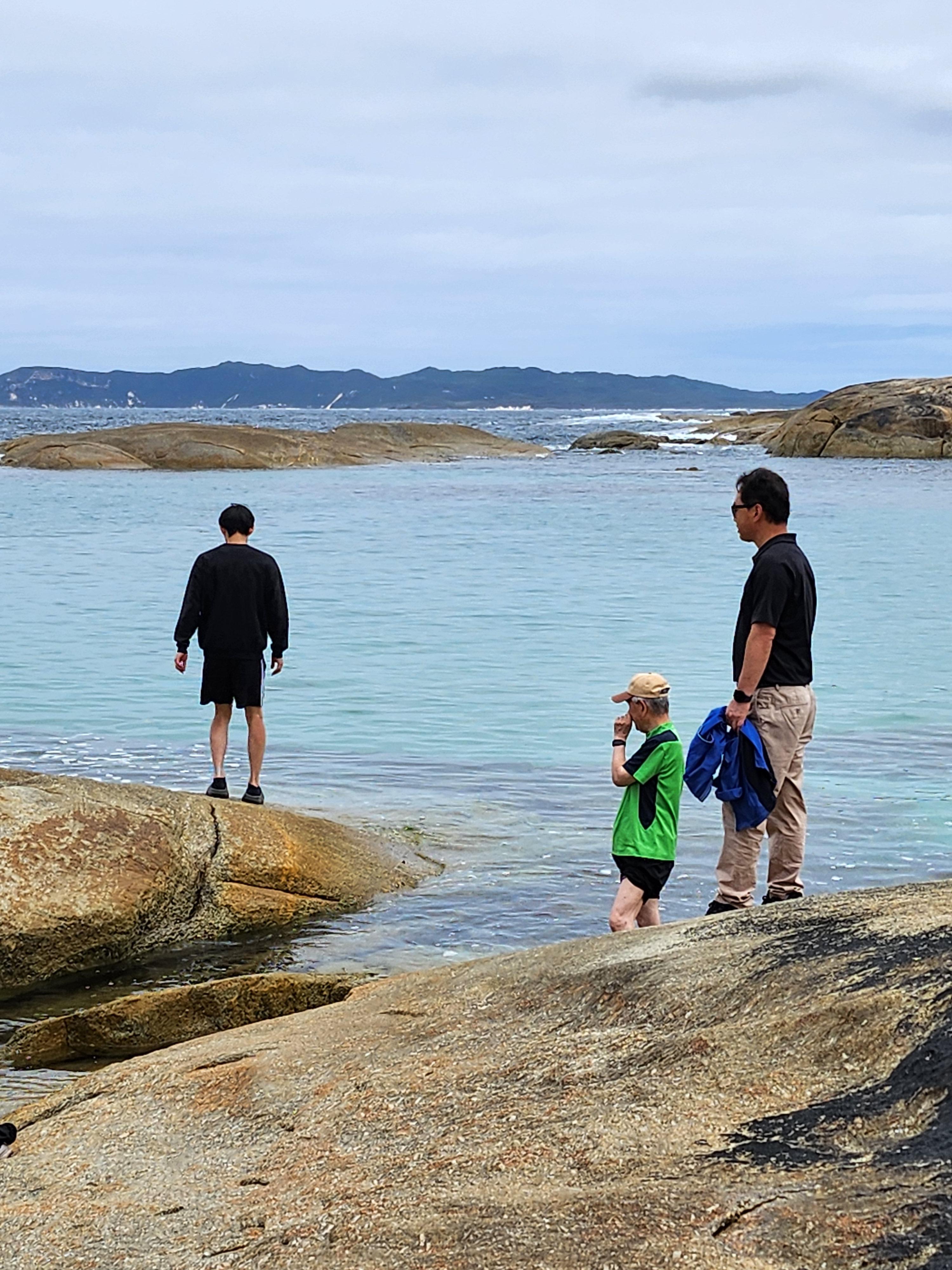 할아버지는 바닷물에 발 좀 담그심