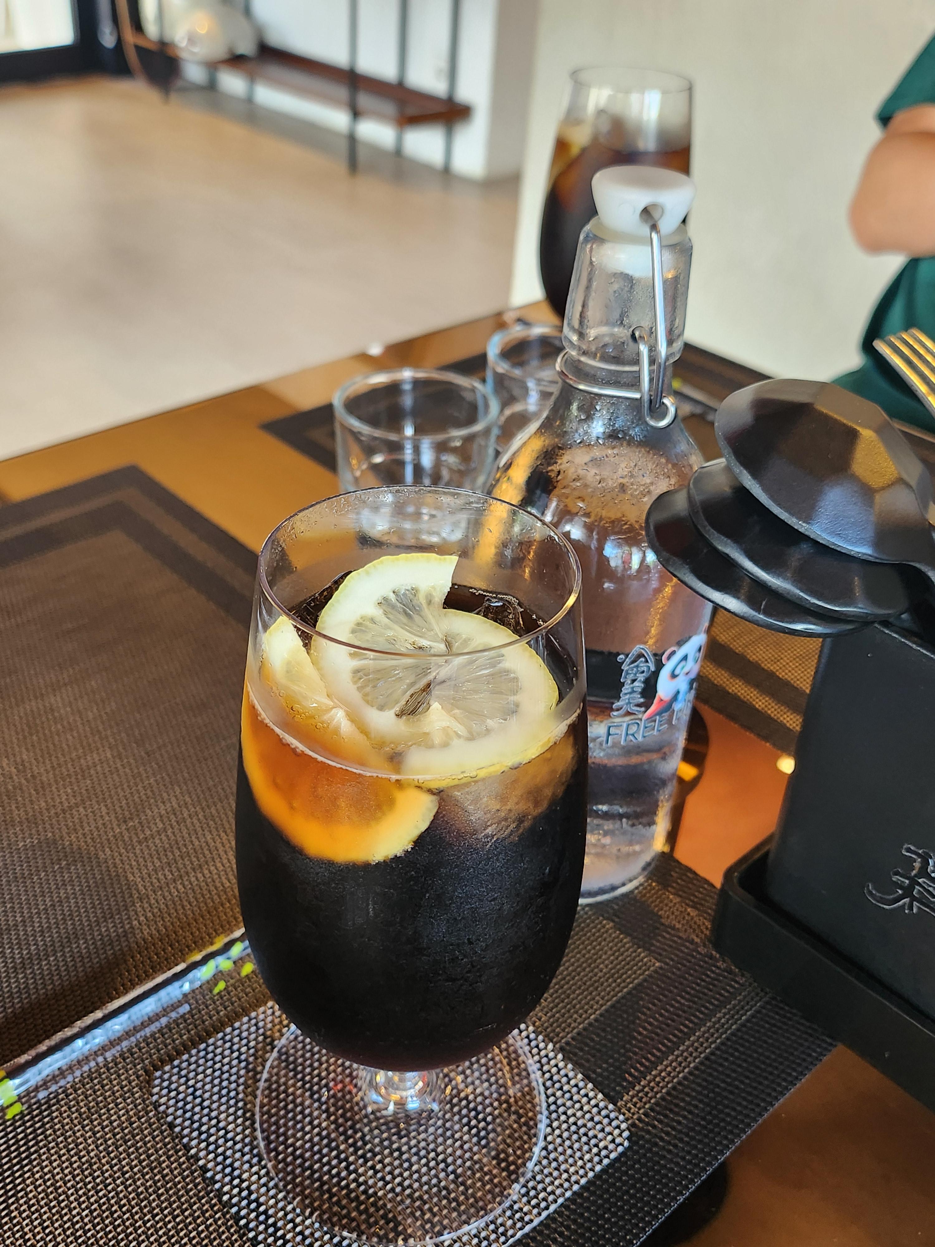 홍차나 커피(hot or cold) 그리고 스넥 제공. 이 에프터눈 티가 애매하다 이걸 먹으면 저녘이 별 생각이 없다..그런다고 공짜인데 안먹기도 그렇고..ㅋㅋ 저녘을 제대로 드실 분들은 과감히 포기해야함.