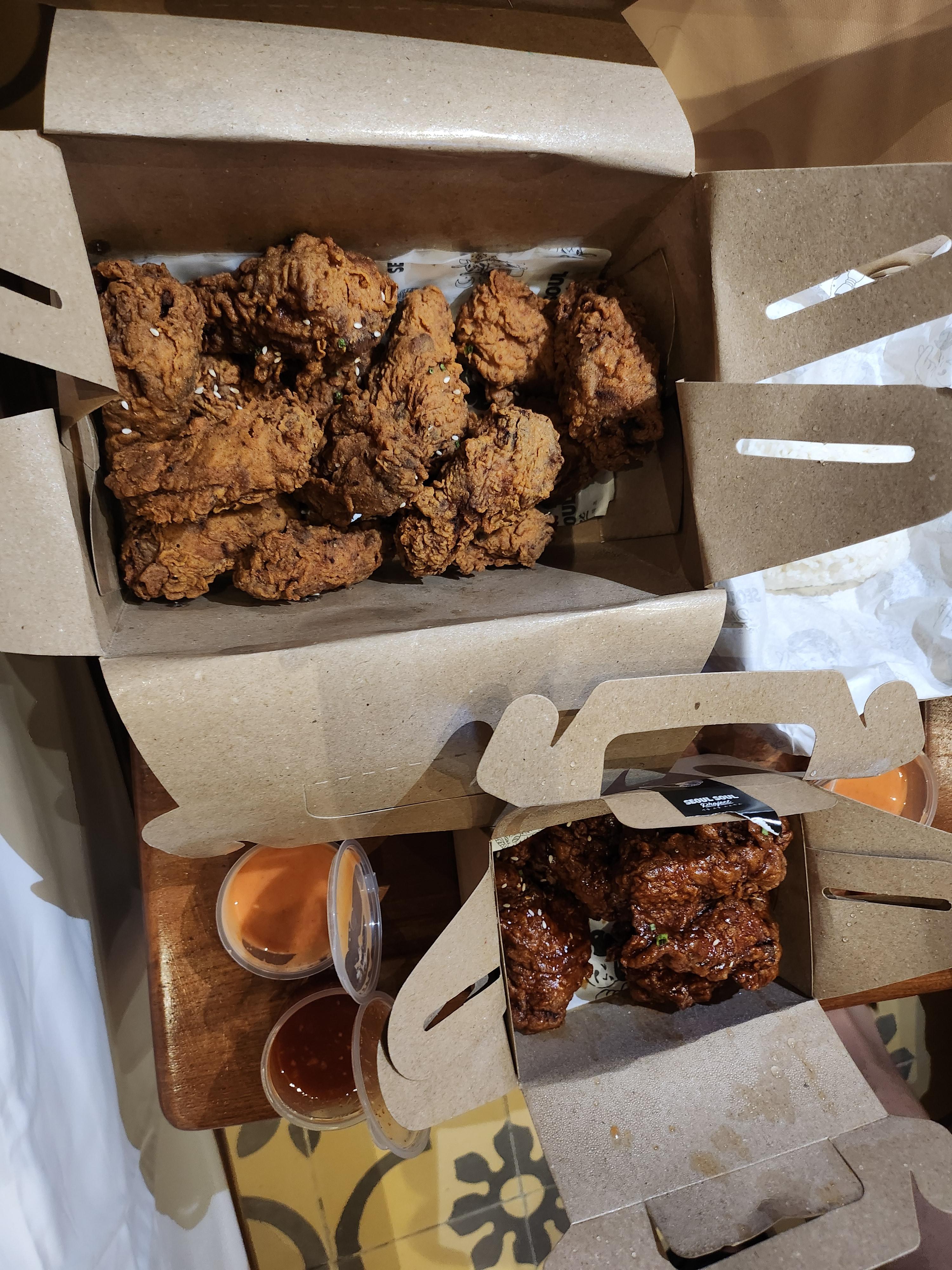 치킨은 기름이 안좋은지 양념을 잘 못 해서인지 닭도 빨간 빛갈이 양념인지 핏물인지.ㅠㅠ...오늘만 그런지 항상 그런지는 모르겠다. 비추 ㅠㅠ 이후로 지웅이는 속이 계속 안좋음.