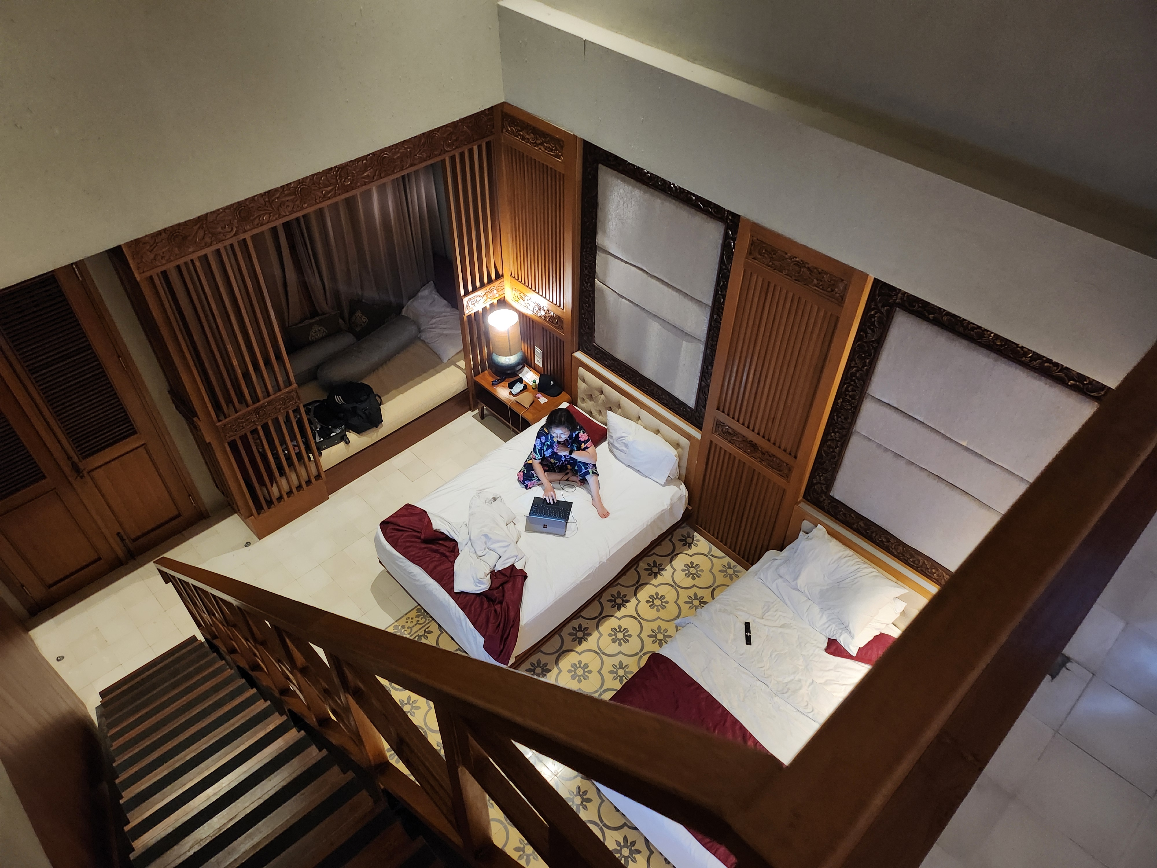 원래 2인 수영장뷰 & 수영장 바로 들어가는 2인 룸 2개였는데 수영장뷰 룸이 수리중이라 패밀리룸으로 업그레이드