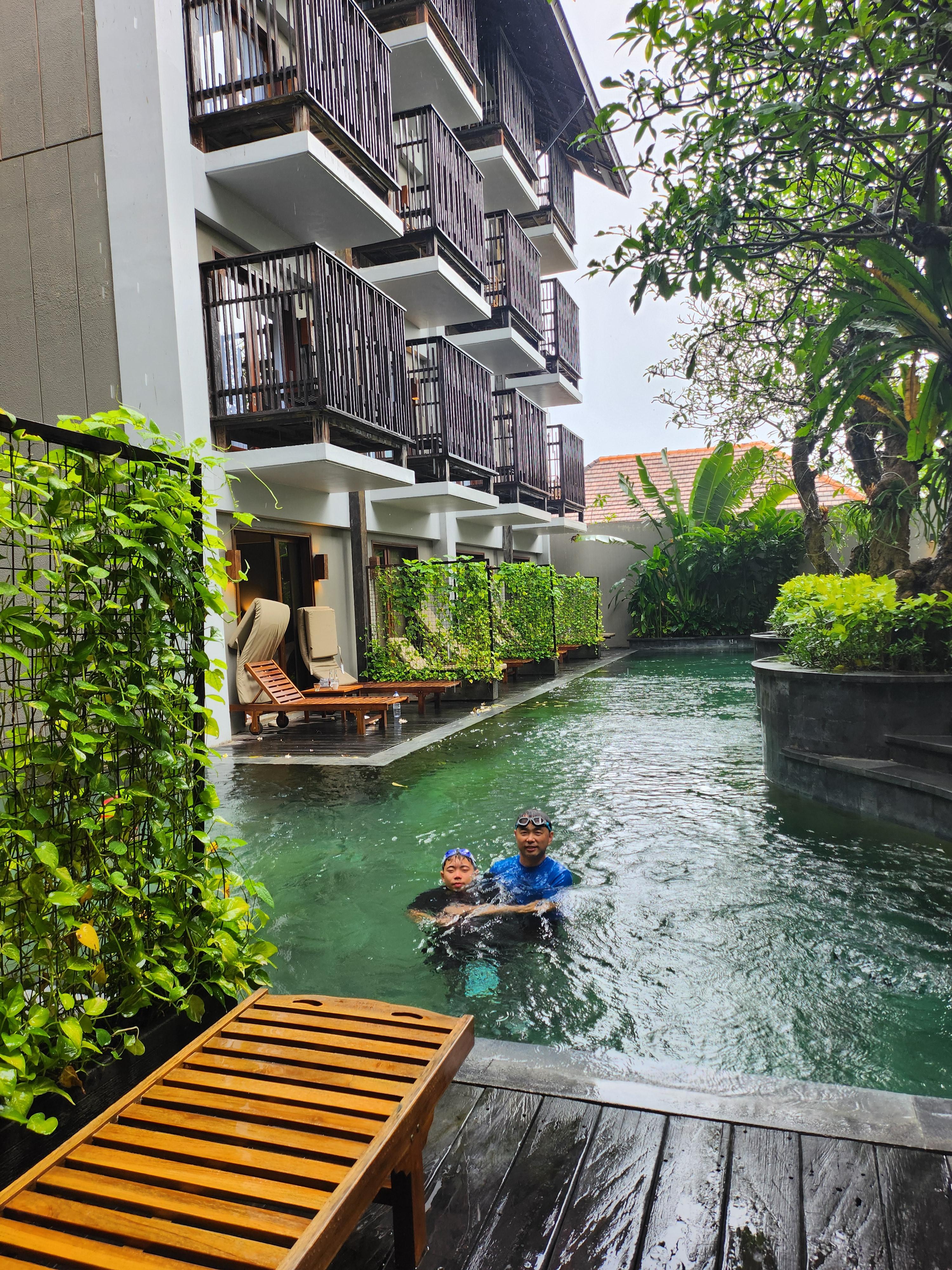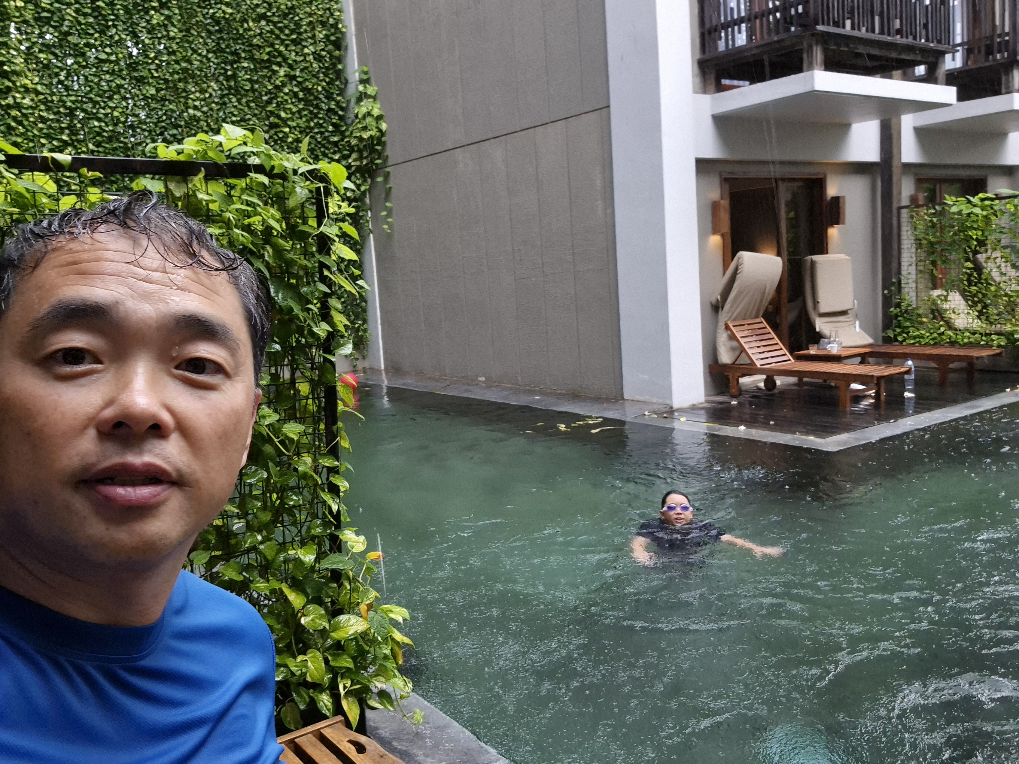 베란다에서 수영장 바로 들어갈 수 있어서 이런날 바로 수영가능. 2.3층이었으면 아예 시도도 안했을 텐데..