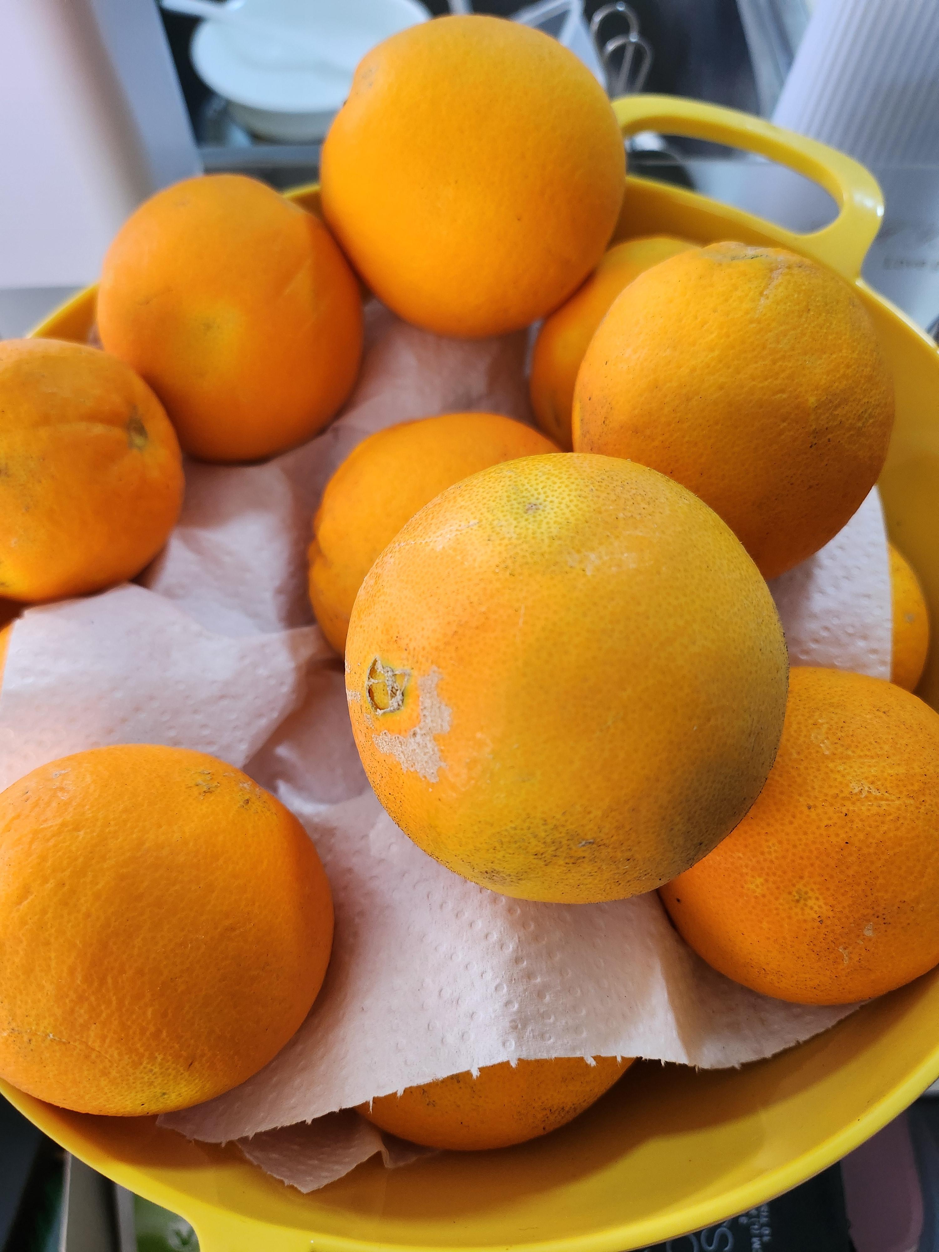 뒷마당에서 수확한 레몬. 가지가 끊어져서 함께 떨어진 레몬. 인데...색은 라임같네