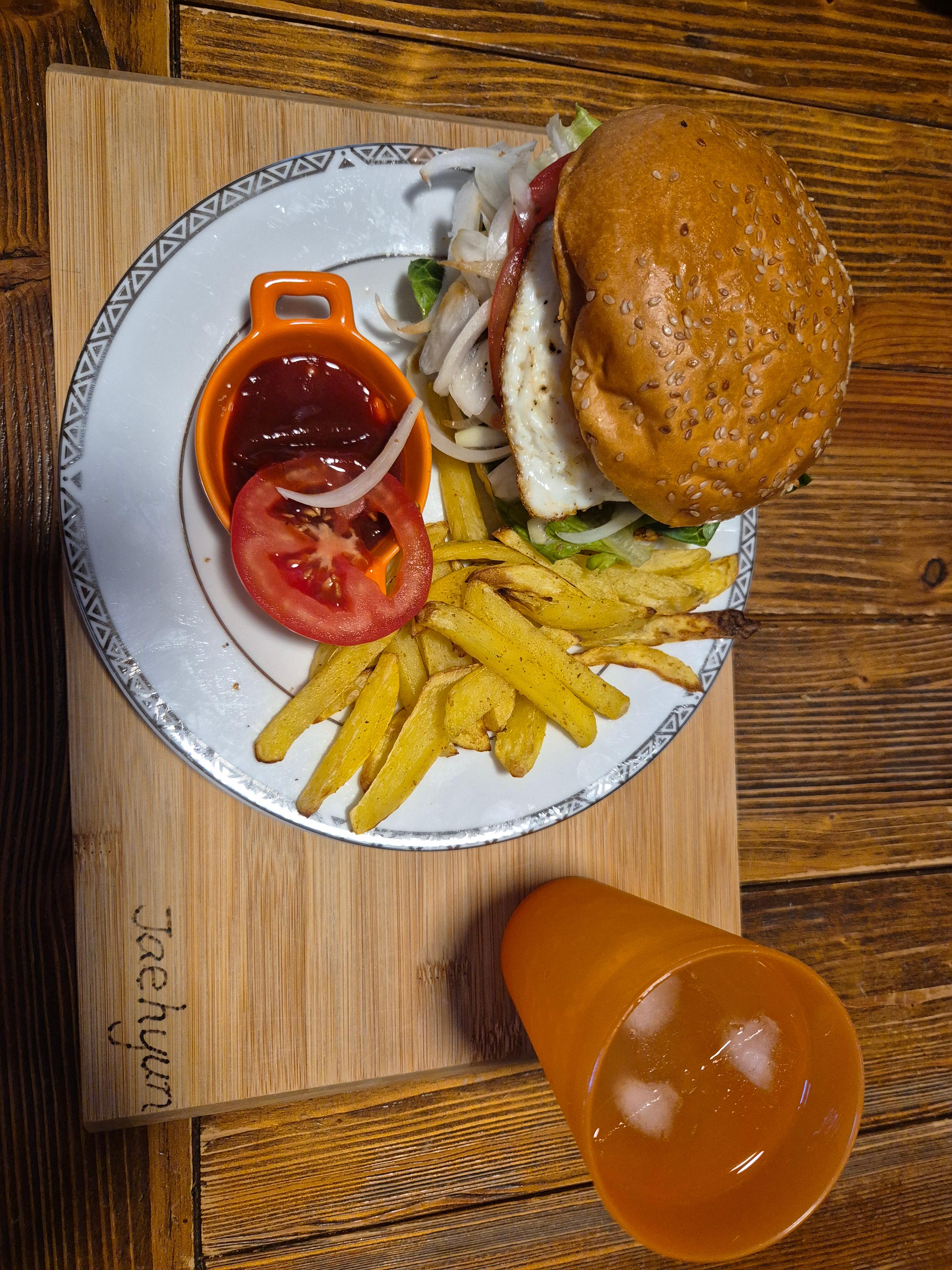 고기 한덩어리는 누구 식사인지 모르겠지만ㅋㅋ