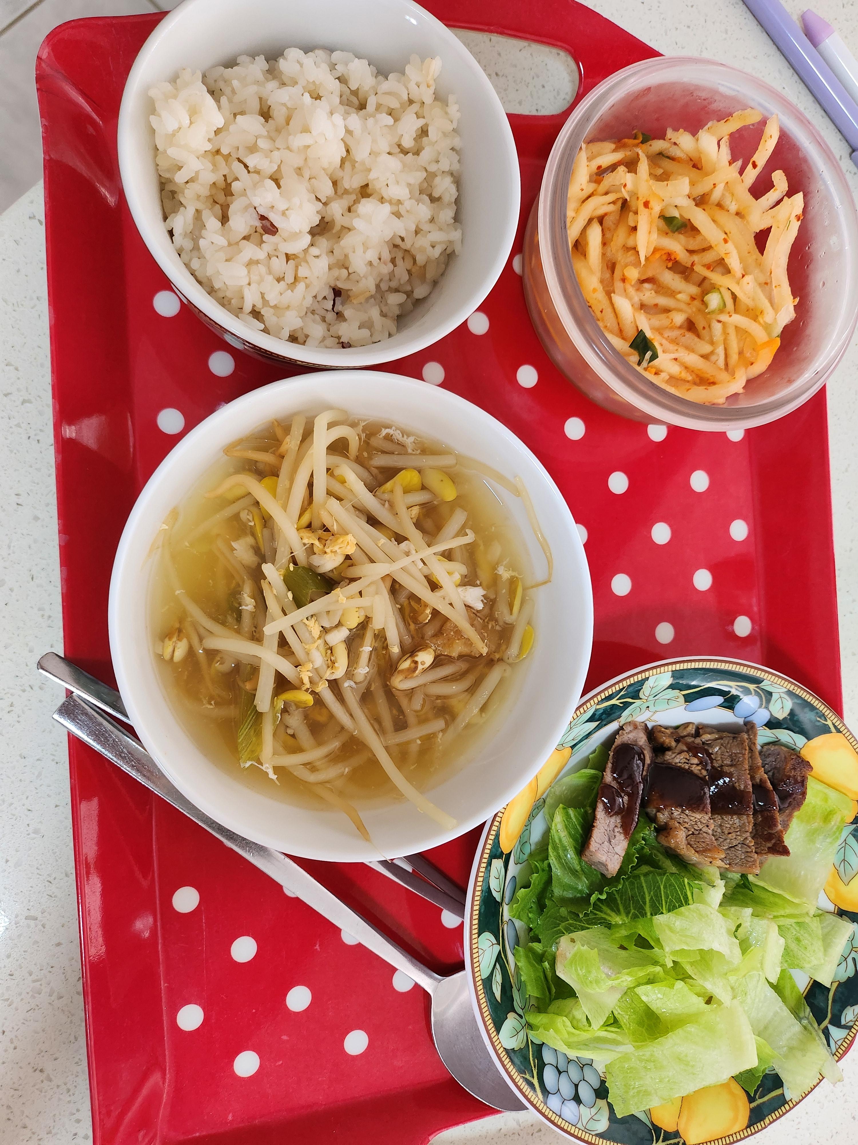 고기 한덩어리는 누구 식사인지 모르겠지만ㅋㅋ