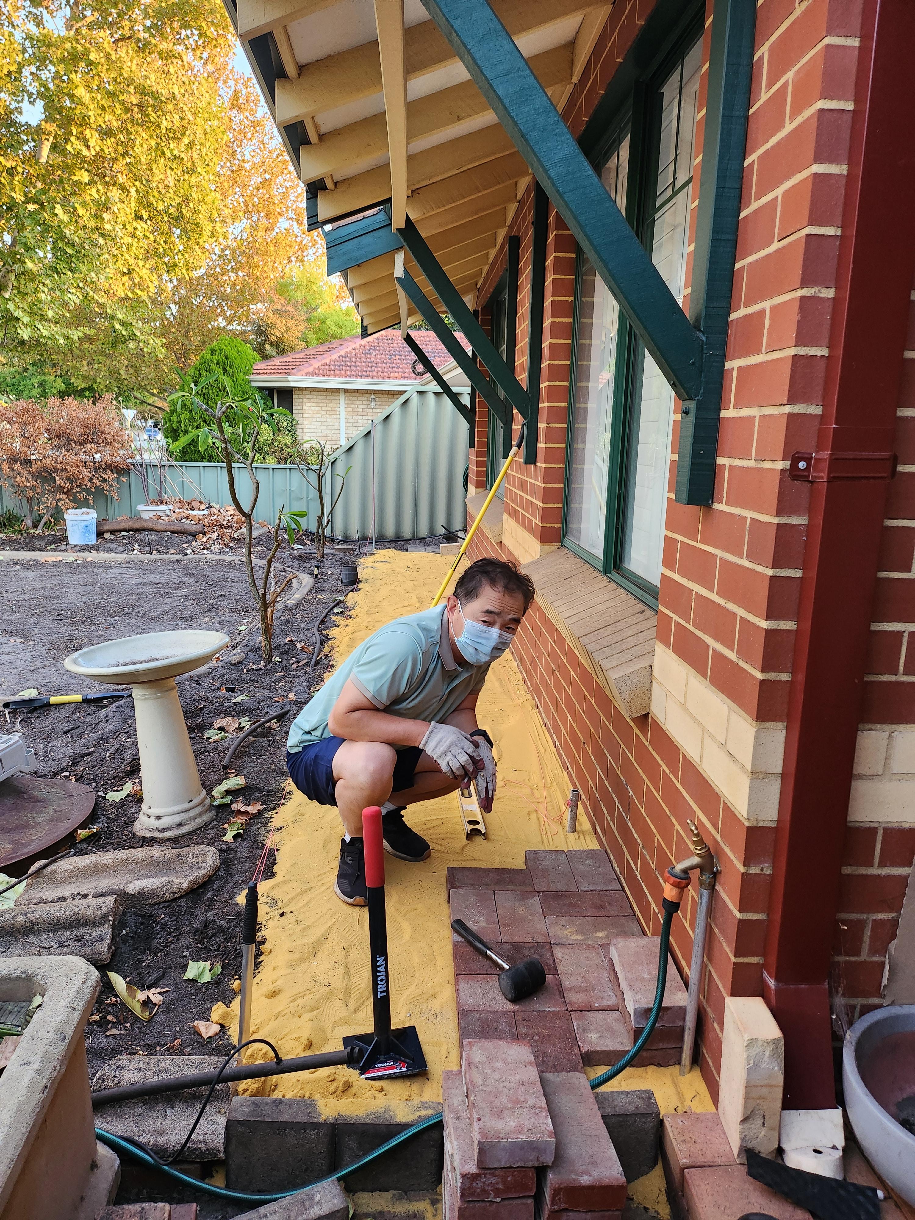 3면이 모두 브릭이지만 이곳만 잔디씨를 뿌렸다.