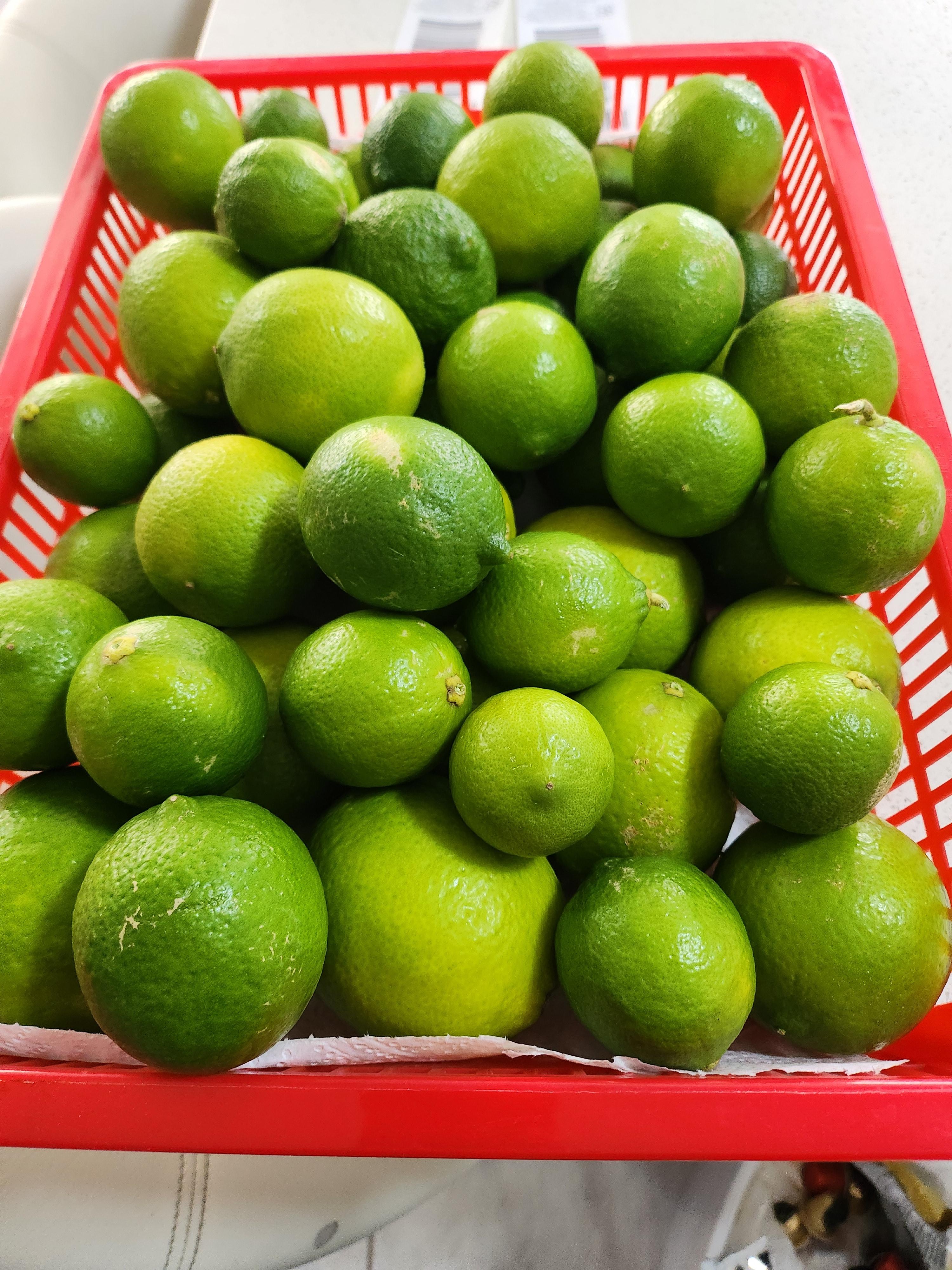 뒷마당에서 수확한 레몬. 가지가 끊어져서 함께 떨어진 레몬. 인데...색은 라임같네