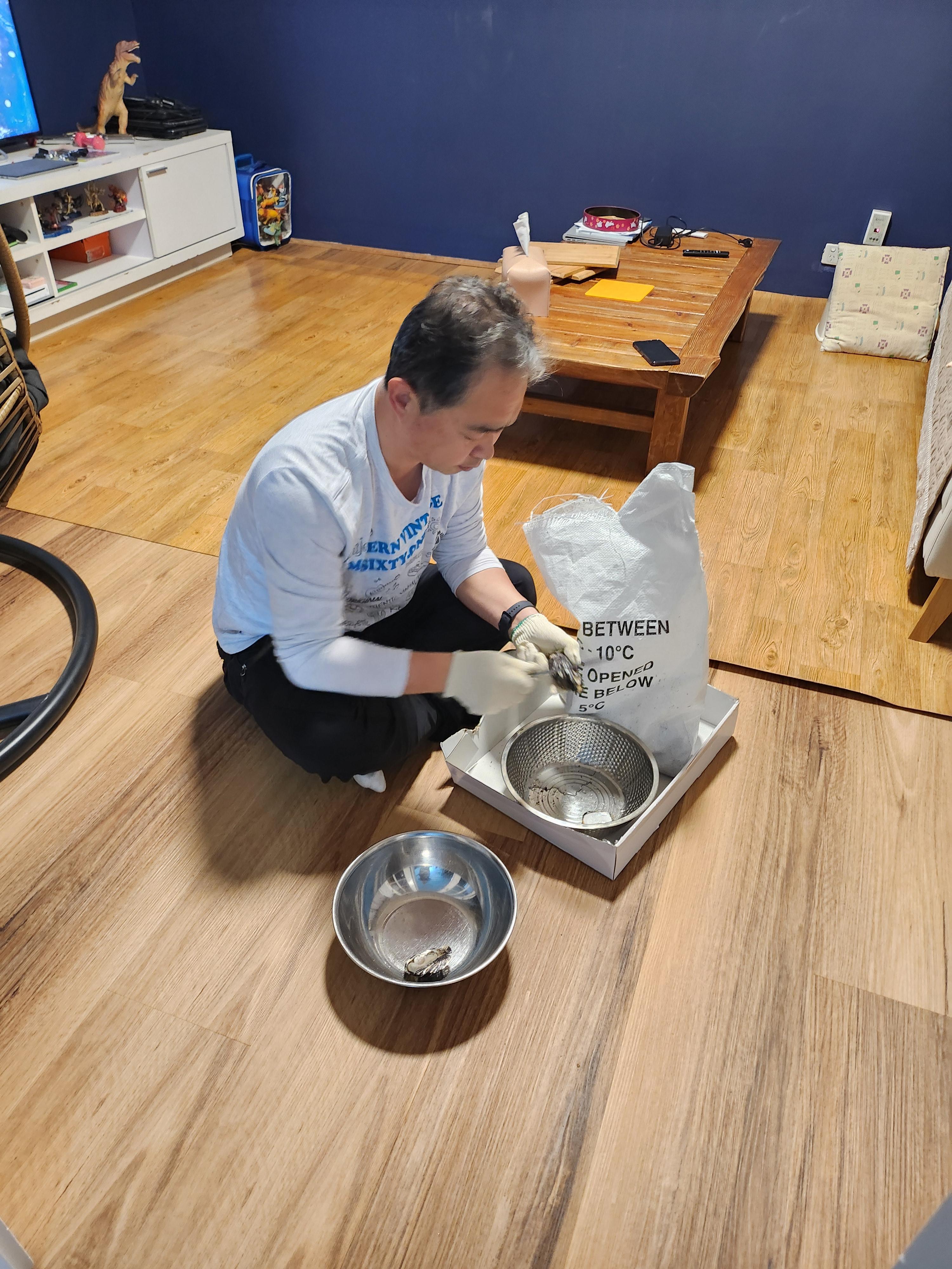 지인에게 선물받은 신선한 생굴. 감사합니다~생굴까는 재현아빠